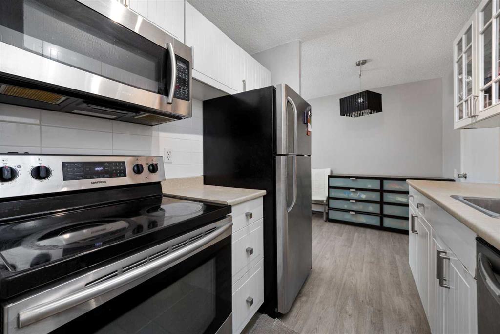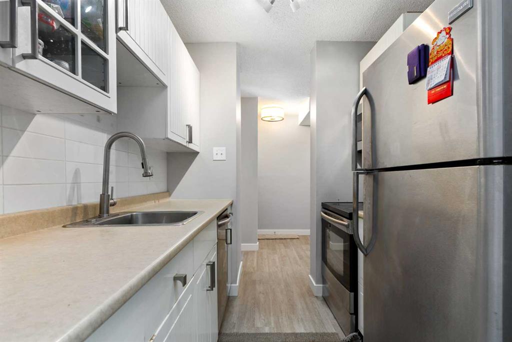 Discover prime urban living in this beautifully updated 2-bedroom apartment, ideally situated in the amenity-rich community of Glenbrook. Just steps from lush green spaces, this 840 sqft apartment with low condo fees offers a spacious, functional layout designed for comfortable living. Enjoy your mornings on the large, private east-facing deck, perfect for sipping coffee or unwinding. Inside, the kitchen boasts modern cabinets and stainless steel appliances, flowing into the generous living room which includes space for a home office. A designated dining area and a large pantry cater to all your entertaining and storage needs. Both bedrooms are well-appointed. The spacious primary bedroom (173 sqft) easily accommodates a king-sized bed and a private workspace. The second bedroom offers views of west-facing green space, ideal for a roommate or growing family. Enjoy the fresh feel of new vinyl flooring throughout and move-in ready carpet. The updated bathroom features floor-to-ceiling tiles, ample counter space and storage, and a roughed-in laundry hook-up. Additional storage can be found in the back entry closet and hallway linen closet. Glenbrook offers unparalleled convenience – you’re within walking distance of popular spots like Glenmorgan Bakery, Primal Grounds Cafe, Safeway, Co-op, and Save-On-Foods. Plus, enjoy easy access to Canadian Tire, Glenbrook Park, Signal Hill amenities, and multiple schools (Glenbrook, Calgary Christian High, A.E. Cross). Commuting is a breeze with a nearby bus stop and the 45 Street LRT Station less than 2 km away. Quick access to Stoney Trail makes mountain getaways or city excursions effortless. Incredible value at rare $0.41 condo fee/sqft for this updated unit in Southwest Calgary!