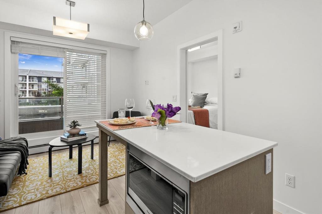 Though the unit itself is compact, the amenities are anything but. Enjoy access to a full range of features including a community garden, fitness centre, spin and yoga studios, bike workshop, pet spa, theatre room, owner’s lounge, event space with kitchen, kids’ play area, and inviting outdoor spaces.