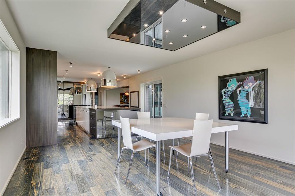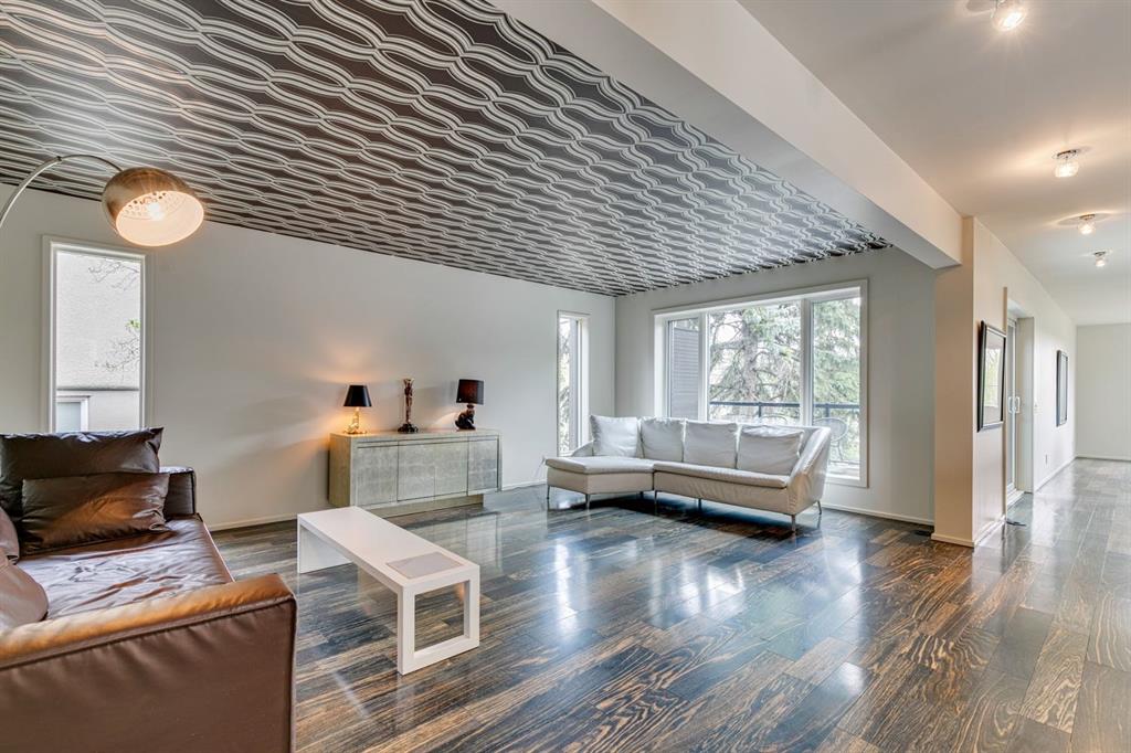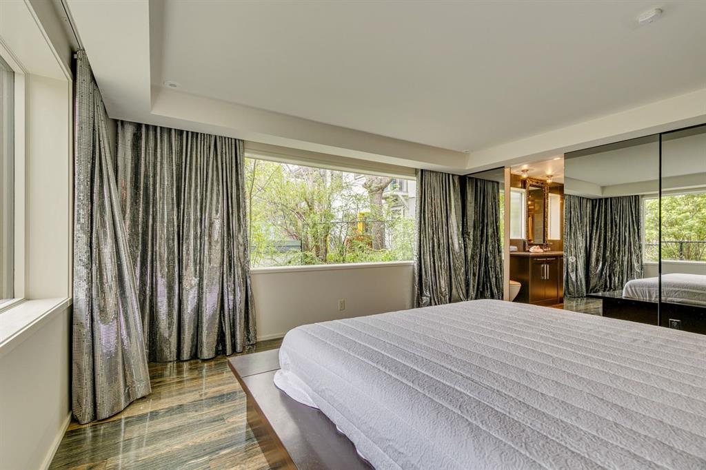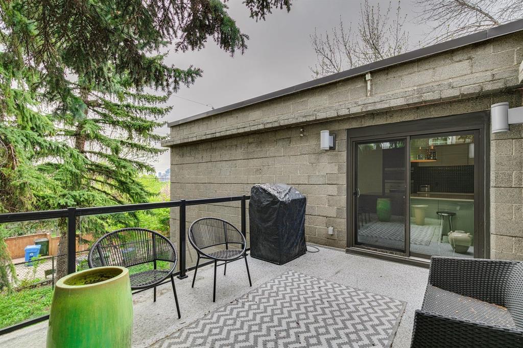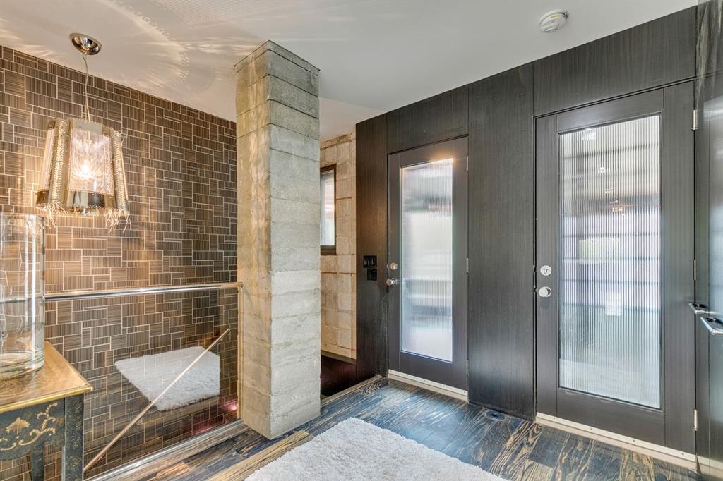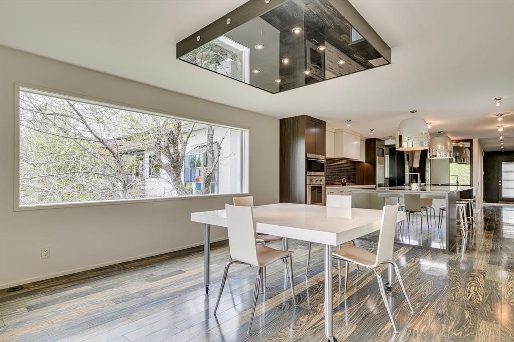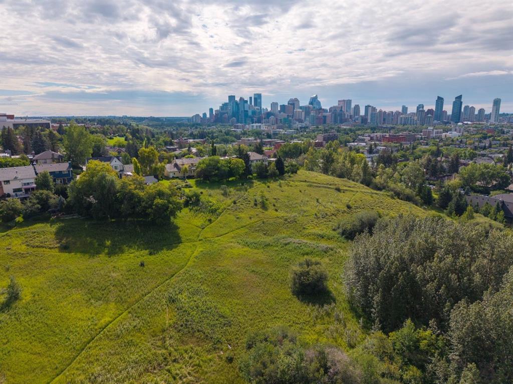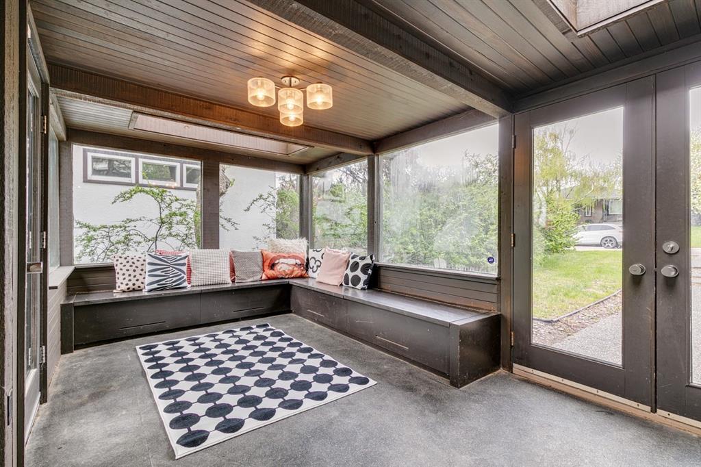 A masterful modern renovation infused with the timeless elegance of 1950s design. Perched on a coveted ridge lot in prestigious Briar Hill, this exceptional hillside walk-out captivates from the moment you arrive. A lush canopy of mature trees and sculpted landscaping welcomes you, setting the tone for what lies beyond. Step into an expansive sunroom bathed in natural light, with soaring skylights and walls of glass that blur the line between indoors and nature. It’s the perfect sanctuary to unwind—whether you’re sipping a fine wine or indulging in a favourite novel, enveloped in serene beauty. Step into a grand foyer featuring sculptural concrete wall elements and a sleek glass-railed staircase that set the tone for sophisticated living. The front den offers a quiet retreat, while the expansive living room seamlessly flows toward the rear deck, perfectly framed by mature evergreens that provide unparalleled privacy. Crafted for both style and function, the kitchen and dining areas are an entertainer’s dream. The kitchen exudes contemporary glamour with pristine white cabinetry, a mirrored pantry and backsplash, and mid-century lighting. An oversized eat-up island anchors the space, offering abundant storage, while a suite of top-tier appliances, including a Viking wall oven, Miele microwave and dishwasher, a Sub-Zero refrigerator, and a Gaggenau cooktop complete the look. The adjoining dining room is truly impressive in scale and design, offering sweeping views of the Downtown skyline, a stunning backdrop for unforgettable gatherings. Descending to the lower level, you’re greeted by rich hardwood floors and subtle stair lighting that create an inviting ambiance. This level is thoughtfully designed as a private retreat, with dedicated spaces for work and rest. The sophisticated home office is enclosed with smoked glass doors and enhanced by custom built-in cabinetry, while a striking feature wall conceals cleverly integrated storage. Three generously sized bedrooms are tucked away on this level, along with a beautifully appointed full bathroom. The primary suite is set apart for ultimate seclusion, enveloped by expansive windows that frame the surrounding landscape. Indulge in a lavish ensuite featuring a deep soaker tub, a sleek glass enclosed shower, and a fully customized walk-in closet—crafted for both luxury and functionality. For the gardening enthusiast, the secluded rear and side yards offer a canvas to create your own private outdoor sanctuary; lush, serene, and tailored to your vision. Thoughtfully integrated into the design, an expansive under deck storage area provides a secure and discreet solution for all your seasonal essentials, ensuring both elegance and practicality are maintained. This Homs is truly in an unbeatable location ideally situated within walking distance to multiple recreational facilities, public transit, the downtown core, Kensington, SAIT, schools, and both the Foothills and The Alberta Children’s Hospital.