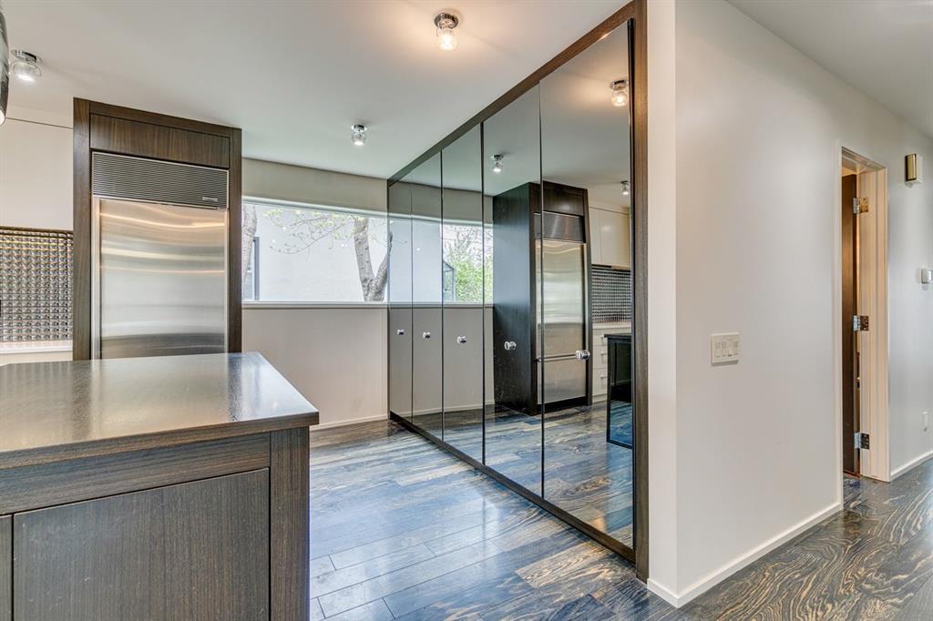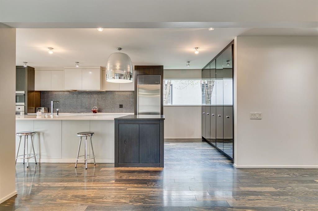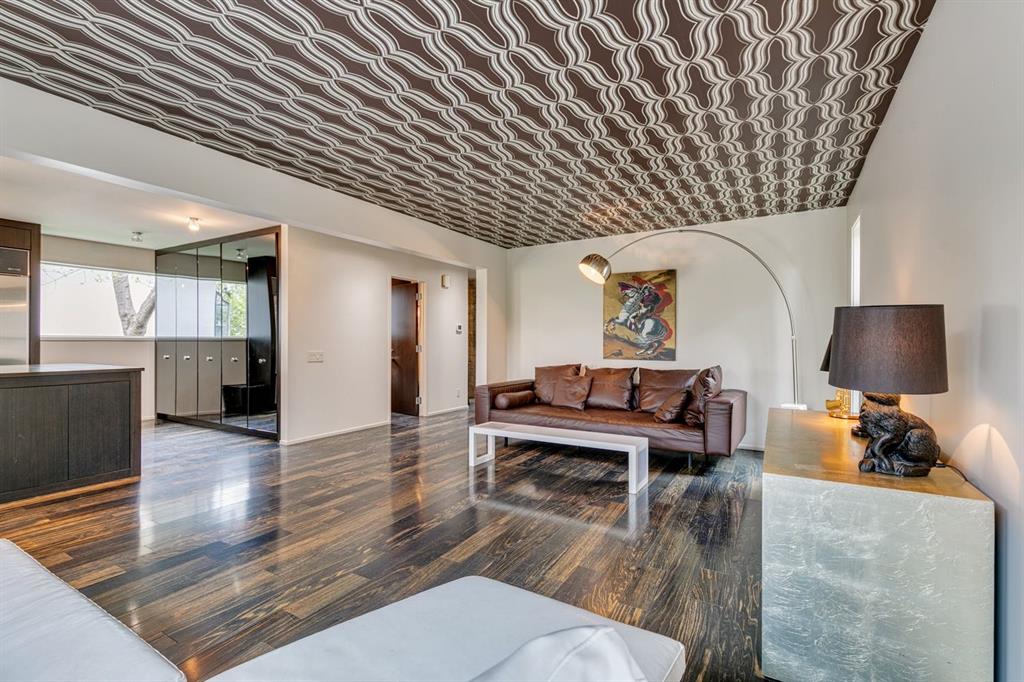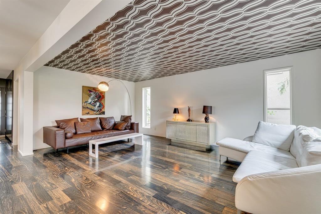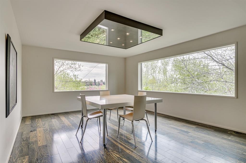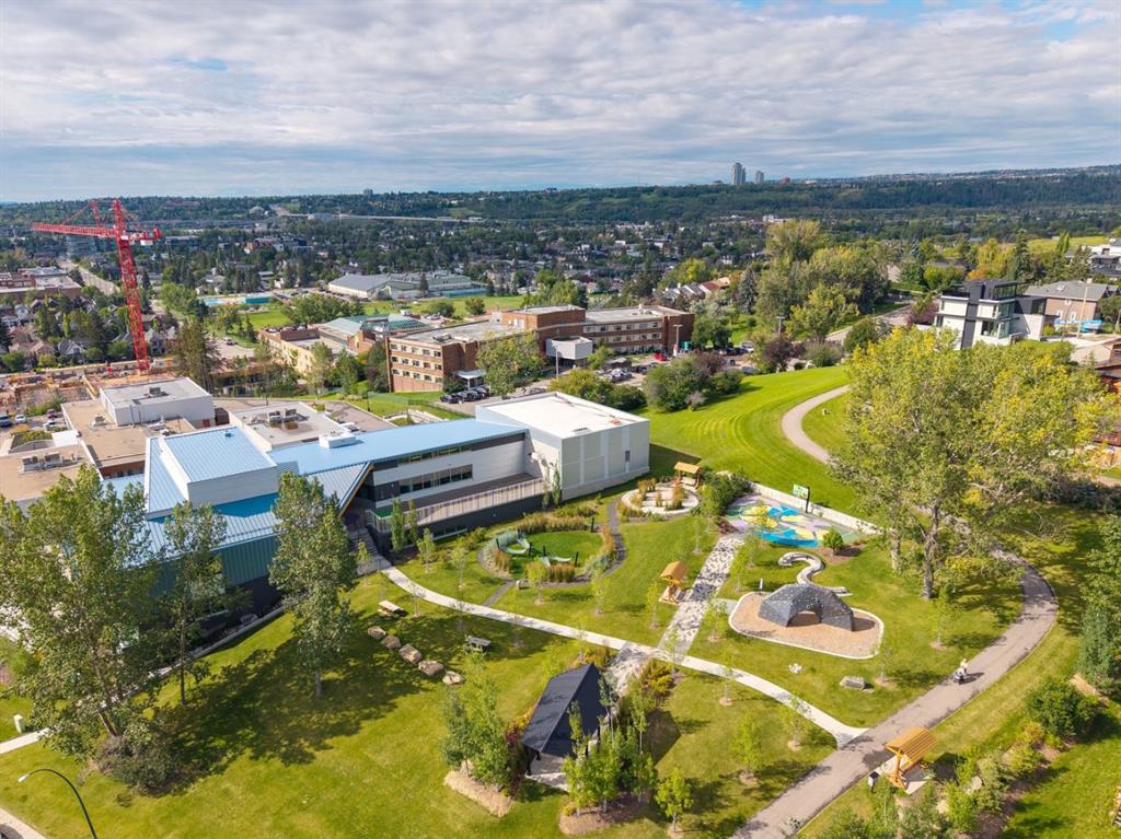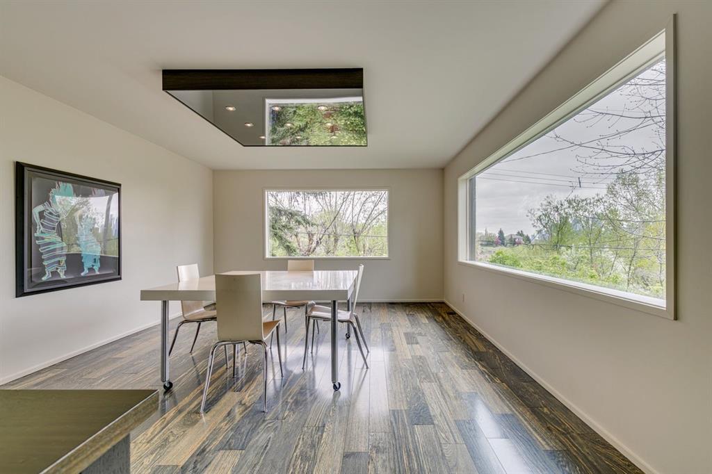 A masterful modern renovation infused with the timeless elegance of 1950s design. Perched on a coveted ridge lot in prestigious Briar Hill, this exceptional hillside walk-out captivates from the moment you arrive. A lush canopy of mature trees and sculpted landscaping welcomes you, setting the tone for what lies beyond. Step into an expansive sunroom bathed in natural light, with soaring skylights and walls of glass that blur the line between indoors and nature. It’s the perfect sanctuary to unwind—whether you’re sipping a fine wine or indulging in a favourite novel, enveloped in serene beauty. Step into a grand foyer featuring sculptural concrete wall elements and a sleek glass-railed staircase that set the tone for sophisticated living. The front den offers a quiet retreat, while the expansive living room seamlessly flows toward the rear deck, perfectly framed by mature evergreens that provide unparalleled privacy. Crafted for both style and function, the kitchen and dining areas are an entertainer’s dream. The kitchen exudes contemporary glamour with pristine white cabinetry, a mirrored pantry and backsplash, and mid-century lighting. An oversized eat-up island anchors the space, offering abundant storage, while a suite of top-tier appliances, including a Viking wall oven, Miele microwave and dishwasher, a Sub-Zero refrigerator, and a Gaggenau cooktop complete the look. The adjoining dining room is truly impressive in scale and design, offering sweeping views of the Downtown skyline, a stunning backdrop for unforgettable gatherings. Descending to the lower level, you’re greeted by rich hardwood floors and subtle stair lighting that create an inviting ambiance. This level is thoughtfully designed as a private retreat, with dedicated spaces for work and rest. The sophisticated home office is enclosed with smoked glass doors and enhanced by custom built-in cabinetry, while a striking feature wall conceals cleverly integrated storage. Three generously sized bedrooms are tucked away on this level, along with a beautifully appointed full bathroom. The primary suite is set apart for ultimate seclusion, enveloped by expansive windows that frame the surrounding landscape. Indulge in a lavish ensuite featuring a deep soaker tub, a sleek glass enclosed shower, and a fully customized walk-in closet—crafted for both luxury and functionality. For the gardening enthusiast, the secluded rear and side yards offer a canvas to create your own private outdoor sanctuary; lush, serene, and tailored to your vision. Thoughtfully integrated into the design, an expansive under deck storage area provides a secure and discreet solution for all your seasonal essentials, ensuring both elegance and practicality are maintained. This Homs is truly in an unbeatable location ideally situated within walking distance to multiple recreational facilities, public transit, the downtown core, Kensington, SAIT, schools, and both the Foothills and The Alberta Children’s Hospital.