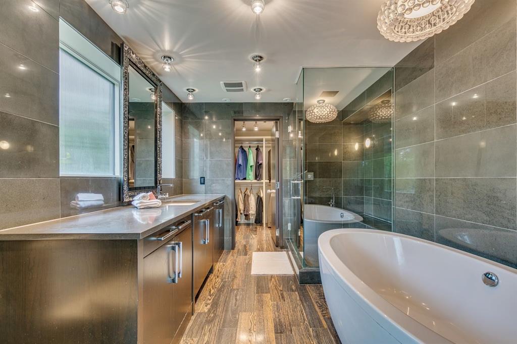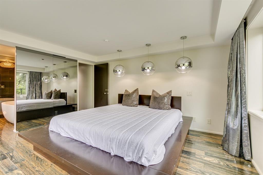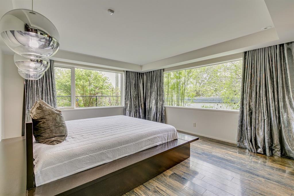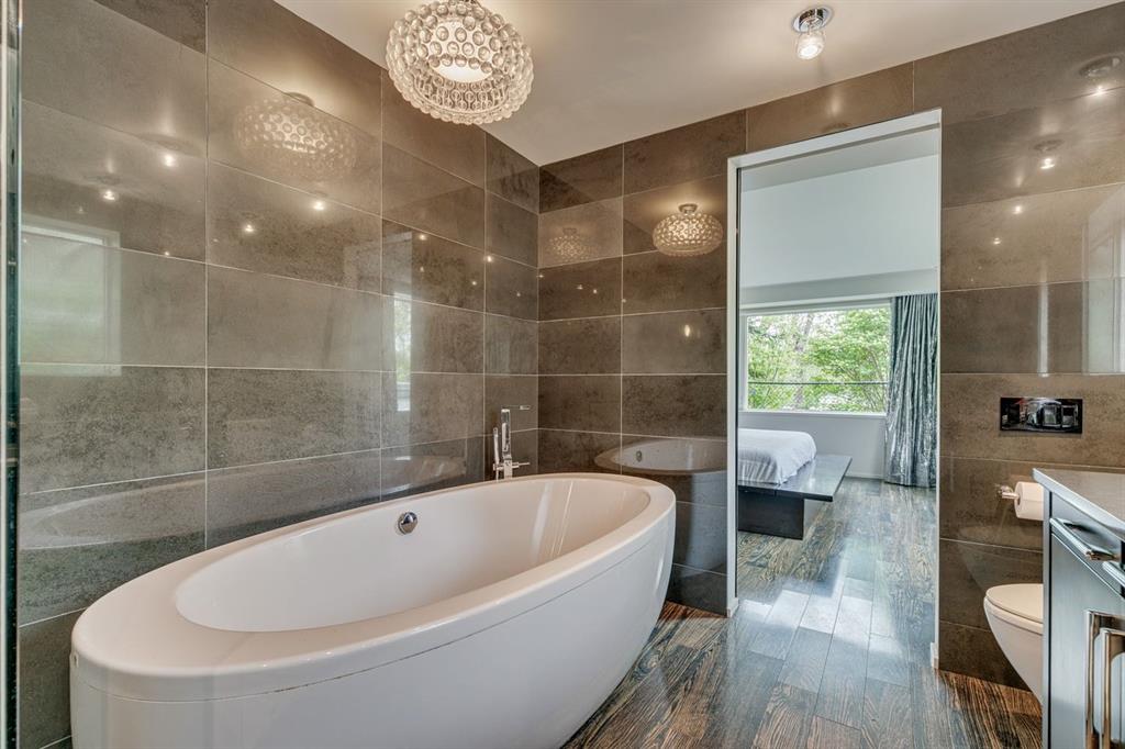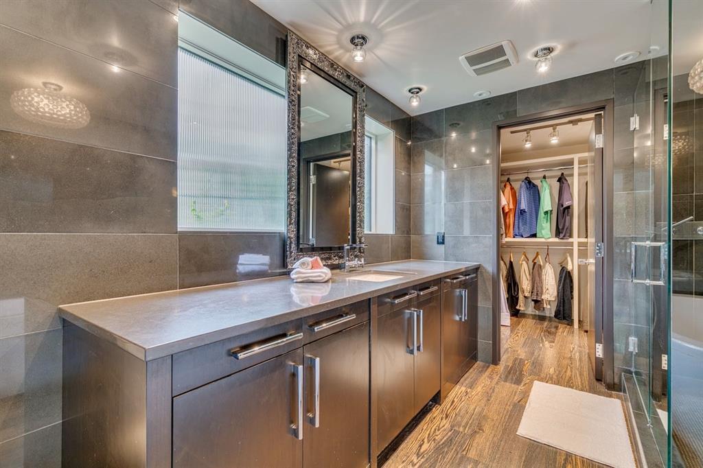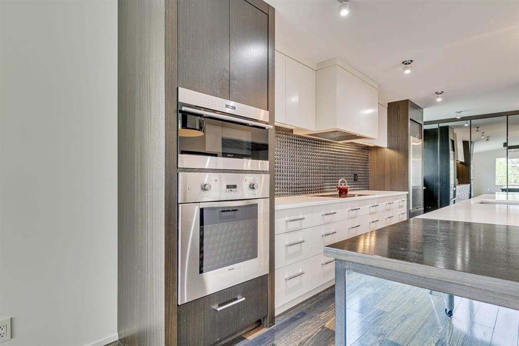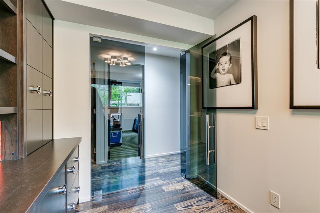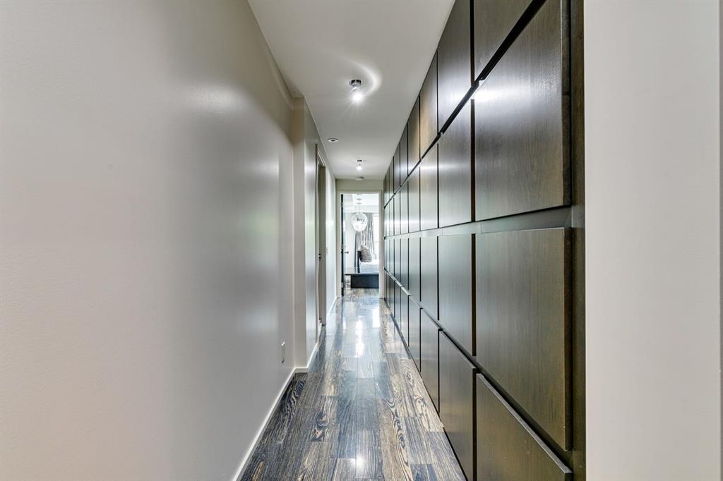 A masterful modern renovation infused with the timeless elegance of 1950s design. Perched on a coveted ridge lot in prestigious Briar Hill, this exceptional hillside walk-out captivates from the moment you arrive. A lush canopy of mature trees and sculpted landscaping welcomes you, setting the tone for what lies beyond. Step into an expansive sunroom bathed in natural light, with soaring skylights and walls of glass that blur the line between indoors and nature. It’s the perfect sanctuary to unwind—whether you’re sipping a fine wine or indulging in a favourite novel, enveloped in serene beauty. Step into a grand foyer featuring sculptural concrete wall elements and a sleek glass-railed staircase that set the tone for sophisticated living. The front den offers a quiet retreat, while the expansive living room seamlessly flows toward the rear deck, perfectly framed by mature evergreens that provide unparalleled privacy. Crafted for both style and function, the kitchen and dining areas are an entertainer’s dream. The kitchen exudes contemporary glamour with pristine white cabinetry, a mirrored pantry and backsplash, and mid-century lighting. An oversized eat-up island anchors the space, offering abundant storage, while a suite of top-tier appliances, including a Viking wall oven, Miele microwave and dishwasher, a Sub-Zero refrigerator, and a Gaggenau cooktop complete the look. The adjoining dining room is truly impressive in scale and design, offering sweeping views of the Downtown skyline, a stunning backdrop for unforgettable gatherings. Descending to the lower level, you’re greeted by rich hardwood floors and subtle stair lighting that create an inviting ambiance. This level is thoughtfully designed as a private retreat, with dedicated spaces for work and rest. The sophisticated home office is enclosed with smoked glass doors and enhanced by custom built-in cabinetry, while a striking feature wall conceals cleverly integrated storage. Three generously sized bedrooms are tucked away on this level, along with a beautifully appointed full bathroom. The primary suite is set apart for ultimate seclusion, enveloped by expansive windows that frame the surrounding landscape. Indulge in a lavish ensuite featuring a deep soaker tub, a sleek glass enclosed shower, and a fully customized walk-in closet—crafted for both luxury and functionality. For the gardening enthusiast, the secluded rear and side yards offer a canvas to create your own private outdoor sanctuary; lush, serene, and tailored to your vision. Thoughtfully integrated into the design, an expansive under deck storage area provides a secure and discreet solution for all your seasonal essentials, ensuring both elegance and practicality are maintained. This Homs is truly in an unbeatable location ideally situated within walking distance to multiple recreational facilities, public transit, the downtown core, Kensington, SAIT, schools, and both the Foothills and The Alberta Children’s Hospital.