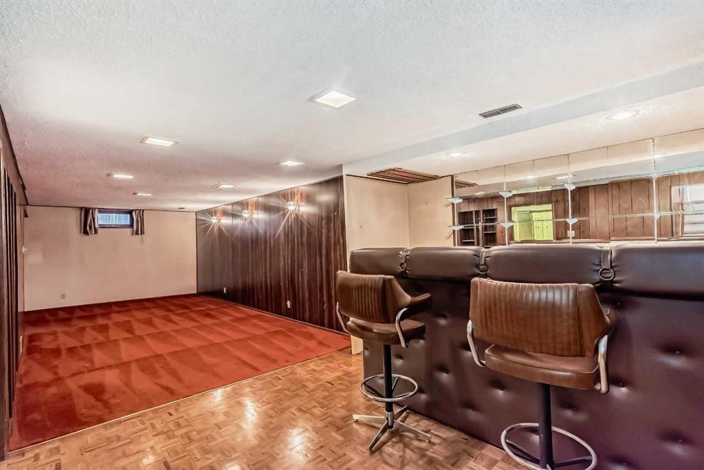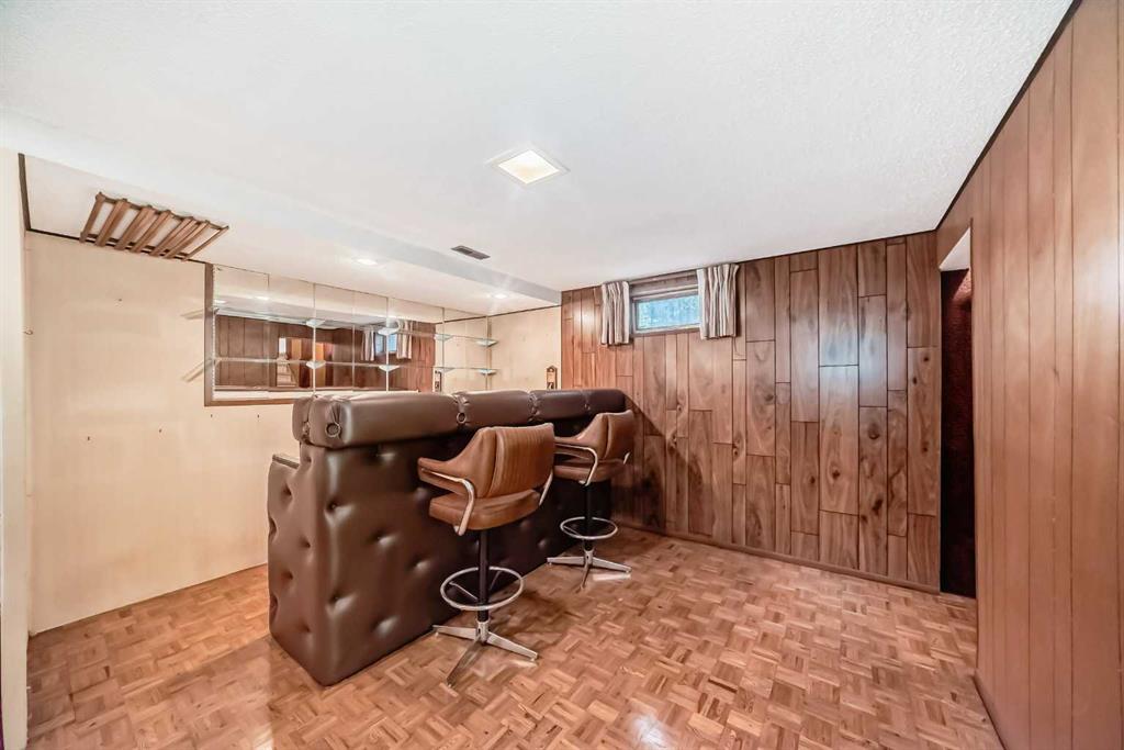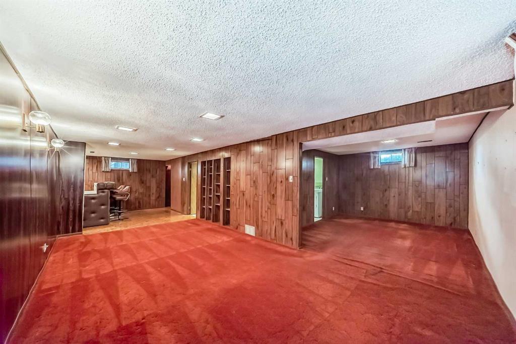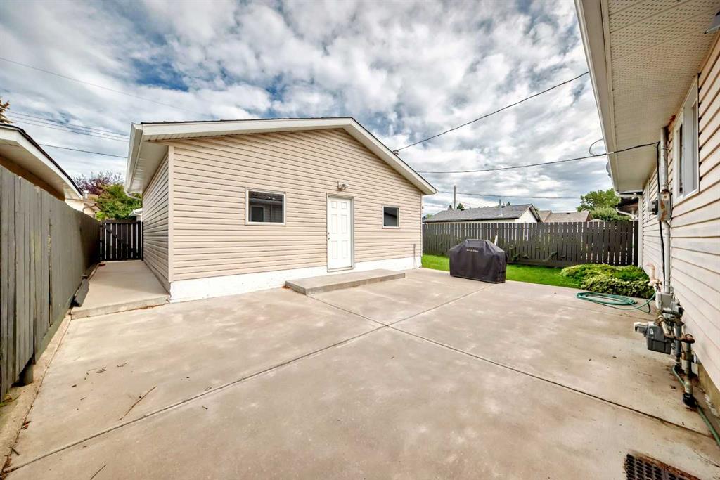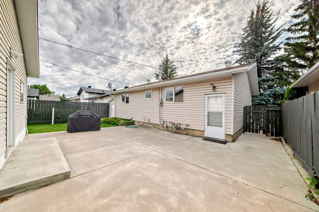 THIS COZY 3 BEDROOM BUNGALOW IS PERFECT FOR A YOUNG FAMILY. The first thing you notice as you get out of the car is the wonderfully poured concrete walk up to the front door and all the way around to the large concrete patio in the back. The bones of the house are great – and with a little cosmetic upgrading you’ll make it your own. The main floor boasts gleaming laminate floor throughout the kitchen, dining area, living room, hallway and all three bedrooms. The nicely done up 4 pce bathroom finishes off the main floor. The basement is fully developed with parquet and carpet flooring, a bar already set up, a large family room with inlaid book shelves, a 2 pce bathroom and another area for your TV , play area, office, exercise equipment or games area – you decide. You’ll also notice a large laundry area, good sized storage area, big newer hot water tank and a newer high efficiency furnace. Now the back yard – an oversized (24 X 26) double garage, completely finished, insulated, heated with full electrical panel. Note also the gas line out to the bar-b-q on your large poured concrete patio – ready for your family and friends’ get-togethers, This quiet community is close to all amenities – schools, shopping, swimming pool, arena, parks and public transportation. Plus it is just off Memorial Drive and in between 52 and 68 Streets – fast to Trans Canada Highway, Stoney Trail and downtown. All this for under $500,000 – don’t miss out.