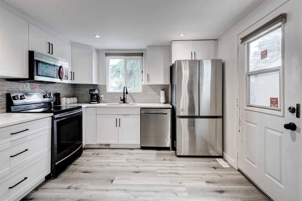 Situated on a beautiful tree-lined street in the highly sought-after inner-city neighborhood of Capitol Hill, this classic two-story home offers a perfect blend of charm and modern updates. Featuring a sunny south-facing backyard and extensive renovations, this 3-bedroom, 3-bathroom home is ideal for a young family or couple. You’re welcomed by lovely landscaping and a charming front porch that leads into a bright, spacious living room with large windows, built-in shelving, and a cozy fireplace. The brand-new kitchen boasts stainless steel appliances, quartz countertops, and all-new cabinetry, flowing into a sunlit dining area with south-facing windows. A rear door opens to a sunny deck and a low-maintenance backyard, leading to an oversized, heated, and insulated double garage with plenty of storage. Upstairs, the large primary bedroom features a beautifully renovated 3-piece ensuite with a glass tile shower and a quaint sunroom—ideal as a home office or reading nook. Two more bedrooms and a 4-piece bath complete the upper level. The fully finished basement includes a spacious rec room, laundry area, and generous storage. Renovations include all new paint, flooring, bathroom vanities, a completely new kitchen, basement development, and updated landscaping, to name only the highlights (2025). Additional upgrades include a new roof (2024), high-efficiency furnace (2016), and hot water tank (2021). With close proximity to schools, SAIT, U of C, North Hill shopping, Confederation Park, and just minutes to downtown, this home offers incredible value in one of Calgary’s premier neighborhoods.