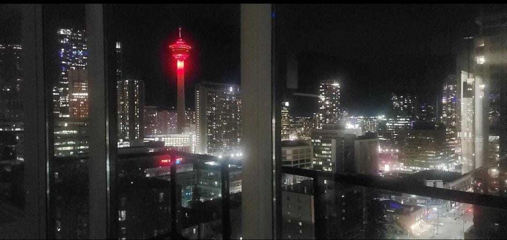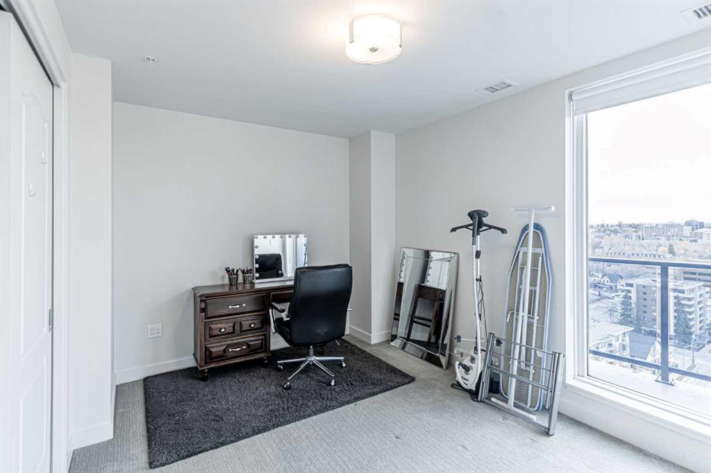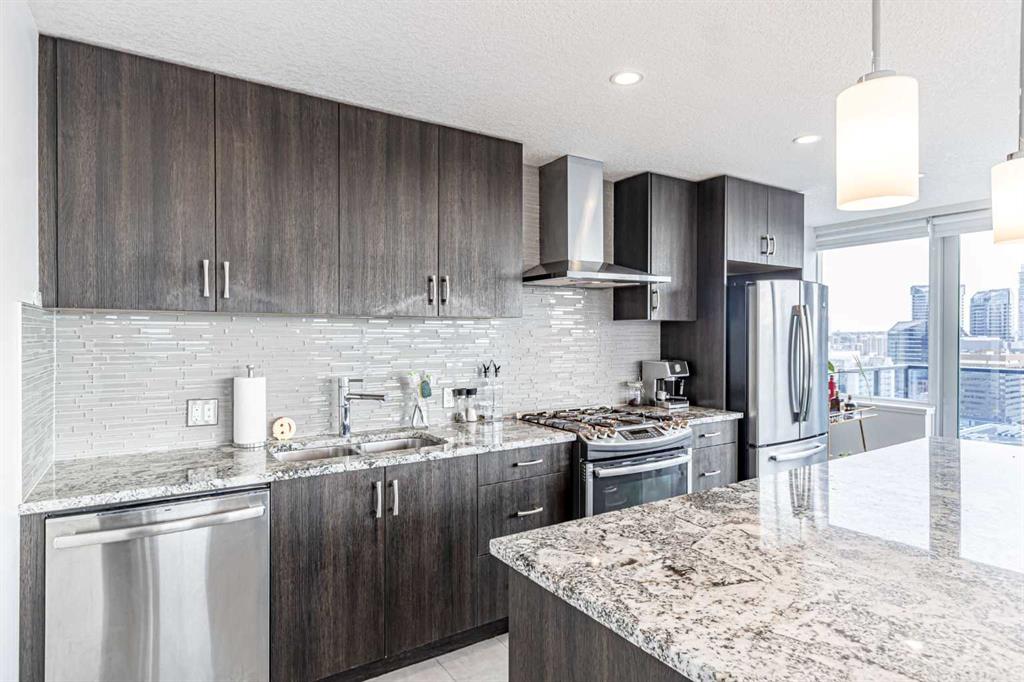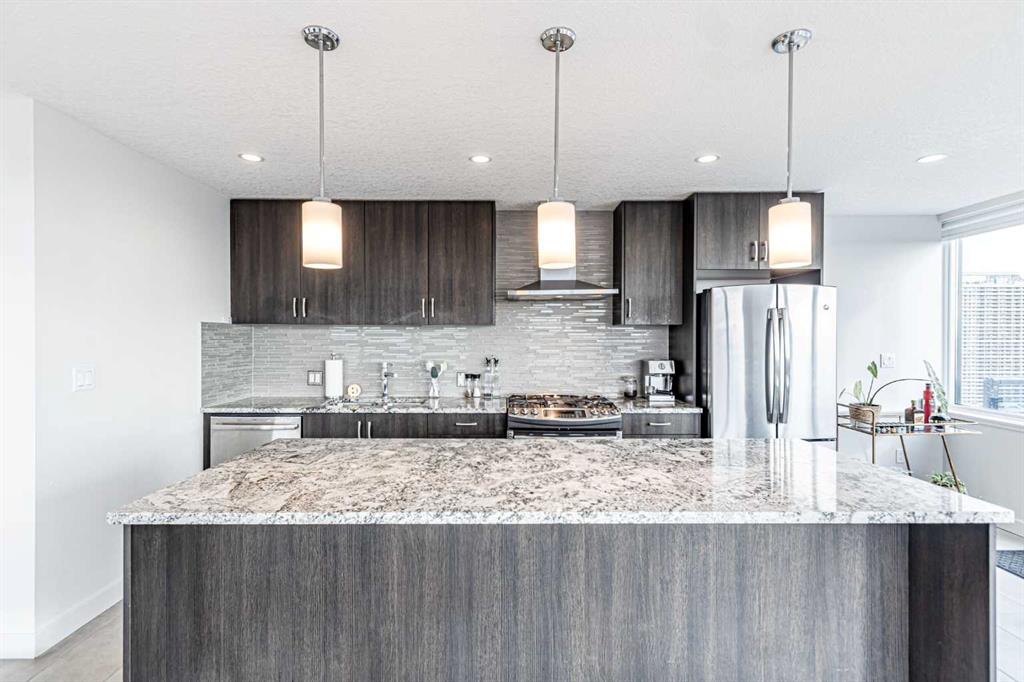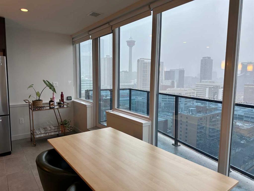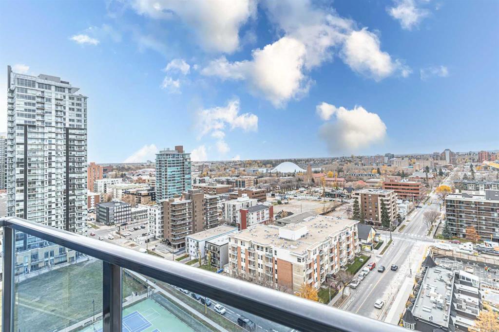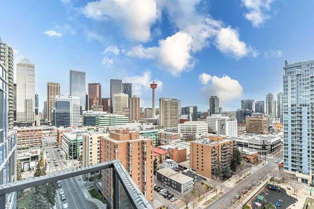 Location doesn’t get any better than this! South-west facing, very bright floor to ceiling windows, 18th-floor sub-penthouse condo overlooking Downtown Calgary Tower and also with Rocky Mountain view. Steps to downtown, 17th Ave, 4th Street entertainment districts, and the Stampede Grounds. Good school district, Western Canada HS. Many daycares in the area. Walk to work. One block to the Hospital. This stunning 2 bed, 2 bath + office unit boasts mountain views, a modern kitchen, and two private balconies with BBQ hookup. It has a wow factor. Enjoy luxury living with a rec room, resident lounge, guest suite, and electric car charging. Prime parking spot included! Schedule your showing today! Experience unparalleled urban living , enjoy breathtaking views of the mountains, Stampede fireworks, and the iconic Calgary Tower. Over looking Central Memorial Park, where many civic entertainment activities are held in the park. Unit features a fully upgraded interior with stainless steel appliances, quartz countertops, and sleek tile flooring. Step onto your private balcony with gas BBQ hookup and soak in the vibrant city atmosphere. Just a short stroll away from downtown office districts, 17th Ave entertainment, and convenient access to the LRT, Talisman Centre, and river pathways. Building amenities include a rec room, bike storage, resident lounge, guest suite, and 16 visitor parking stalls with electric car charging. Parking is an oversized parking spot conveniently located near the exit. This is more than just a condo; it’s a lifestyle. Concierge service during office hours.
