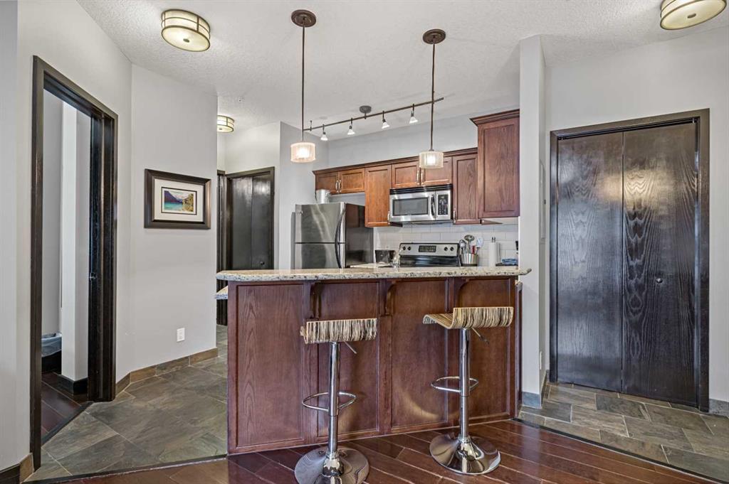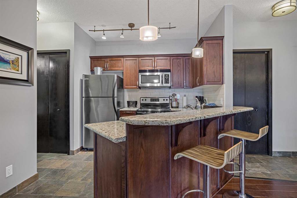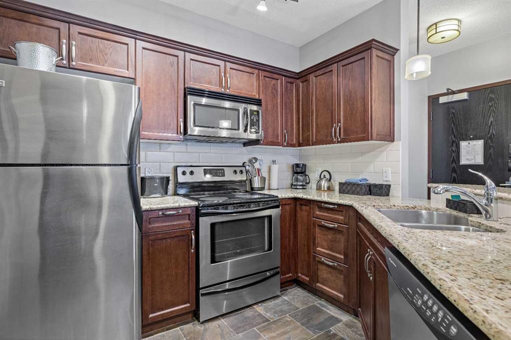 Located in the popular Grand Rockies Resort, this one-bedroom tourist home offers a fantastic opportunity to own a revenue-generating property in the heart of Canmore. The resort is known for its impressive indoor pool and a full range of amenities for guests and owners alike. This second-floor condo comes fully furnished — including all furniture, kitchenware, and linens — making it truly turnkey, the shower has also been updated. Use it as your personal mountain retreat, and rent it out nightly when you’re not here to enjoy it.