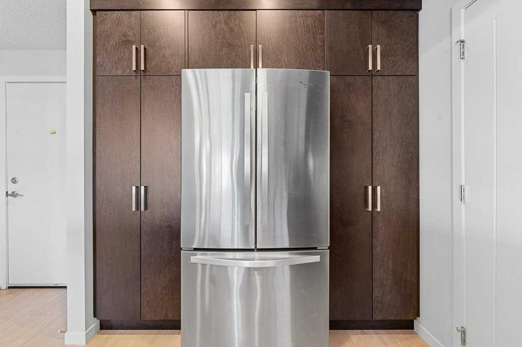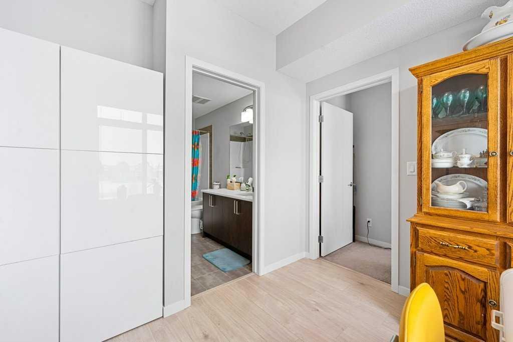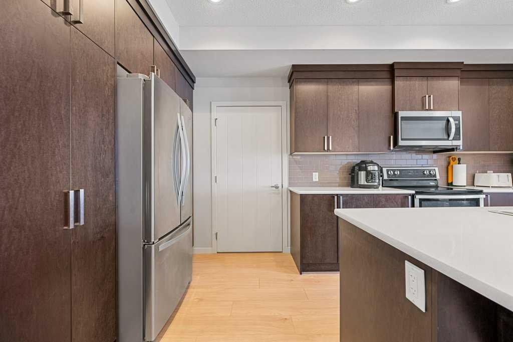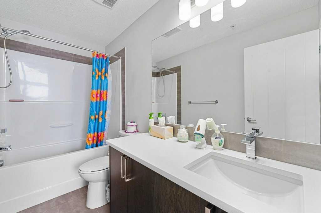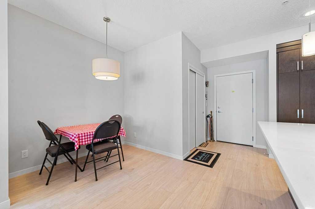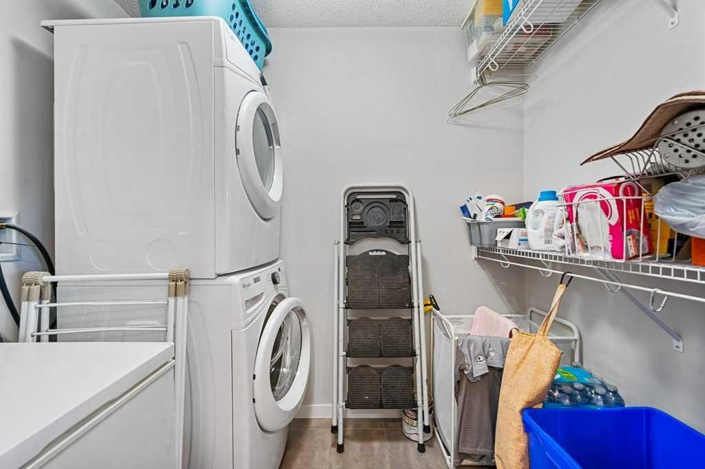 Welcome to “The Elements” a popular Cedarglen built, low maintenance lifestyle development in the amenity rich community of New Brighton. Community Centre, water park, winter ice skating, play parks etc. Close to the Hospital, shopping, restaurants, schools & Fish Creek Park. Express bus to City Centre. This unit has a fabulous location with views from every principal room & the spacious balcony of a beautiful wetlands park with paved pathways to stroll through nature & enjoy picturesque views. Inside you will discover an open, airy plan featuring 9-foot-high ceilings & loads of light flooding in thru numerous large windows. Enjoy low maintenance vinyl plank flooring. 2 spacious bedrooms plus a den, 2 full baths, in unit laundry & storage room. The massive kitchen offers a plethora of modern cabinets, quartz countertops, stainless steel appliances & a large island with sit up breakfast bar. The spacious kitchen is open to the dining & great rooms creating the perfect space for entertaining. This is the 3rd largest floorplan in the development plus it comes with two parking stalls & storage cage, very rare to get!
