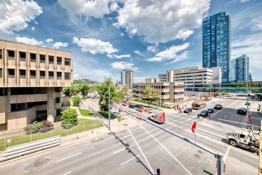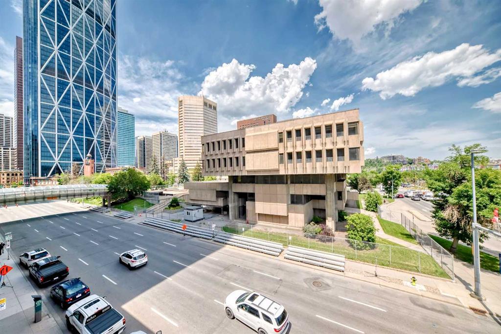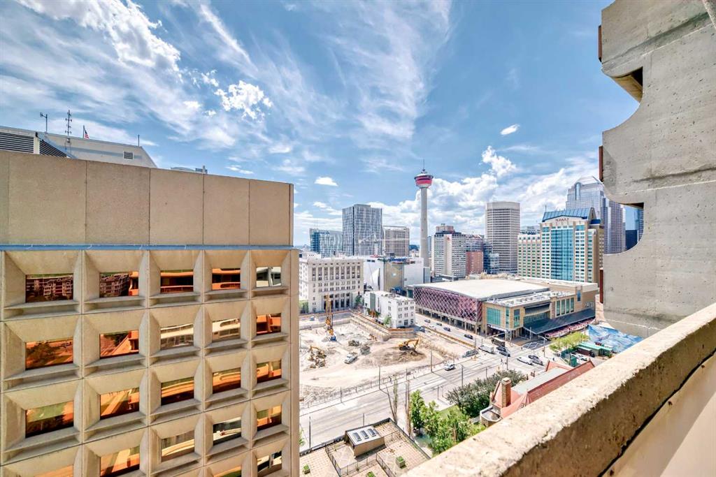 Spacious Downtown Condo with Stunning Views! This spacious south-facing unit at Rocky Mountain Court. Offering over 700 sq.ft. on the 21st floor. This condo is perfectly situated in the heart of downtown Calgary, closes to everything- the C-Train, Central Library, Olympic Plaza, City Hall, and a variety of shops and restaurants. The functional floor plan includes a generous living room and bedroom. The big storage room can be easily transformed into a home office or den. The huge balcony is perfect for relaxing or watch the city views. Residents enjoy access to fantastic building amenities, including a sauna, fitness center and racquetball courts.