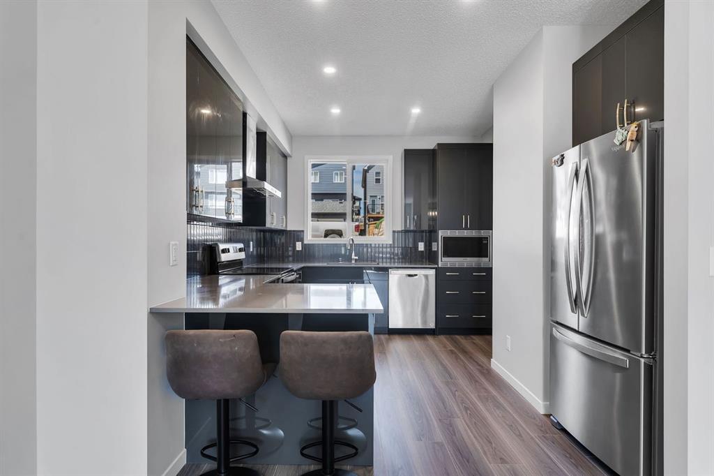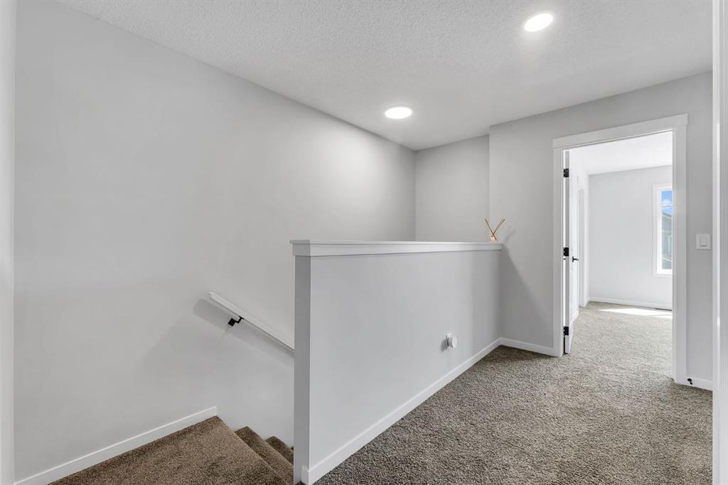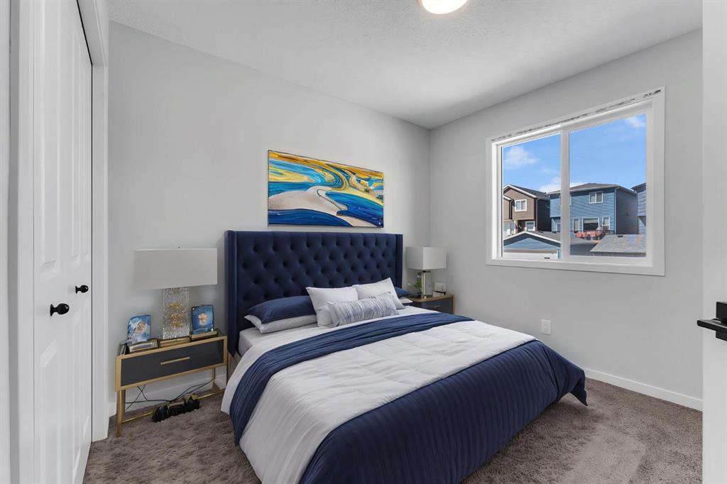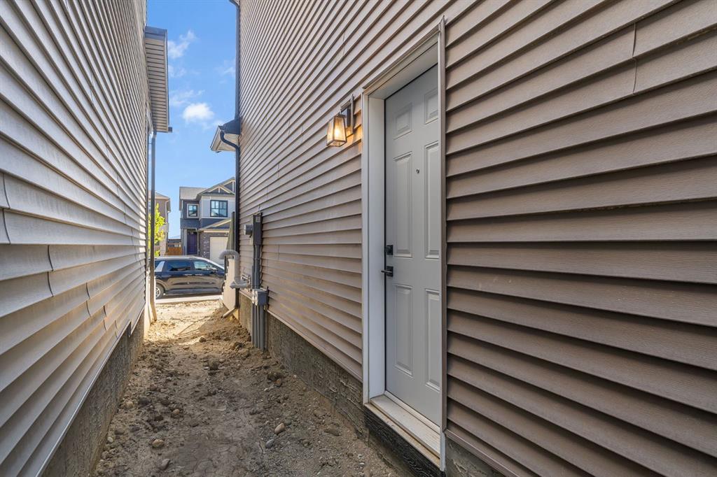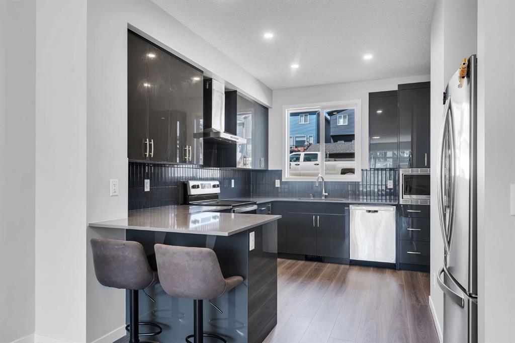 Welcome to the most affordable home currently available in Glacier Ridge, NW Calgary — and it’s not just about the price. This stunning 2024-built gem offers an unbeatable combination of modern elegance, luxury upgrades, and functional design that truly sets it apart. Featuring 3 spacious bedrooms and 2.5 beautifully finished bathrooms, this home has been thoughtfully crafted for comfort and style. From the moment you arrive, the striking curb appeal draws you in. Step inside and you’re greeted by an unusually wide and expansive living area — a rare find that offers incredible space for both entertaining and everyday living. The designated dining space flows seamlessly into the show-stopping gourmet kitchen, where glossy upgraded cabinetry with gold handles, sleek quartz countertops, and a designer backsplash create a sophisticated vibe. The chimney-style hood fan, built-in microwave, and double-door refrigerator add both style and convenience. The peninsula adds extra seating and prep space, and yes — even the soap dispenser has been upgraded for that extra touch of functionality.Upstairs, the master bedroom is your private retreat with a luxurious standing shower ensuite, while the other bathrooms are equally refined with high-end finishes. The laundry area stands out with designer tiles and extra built-in storage for maximum efficiency.