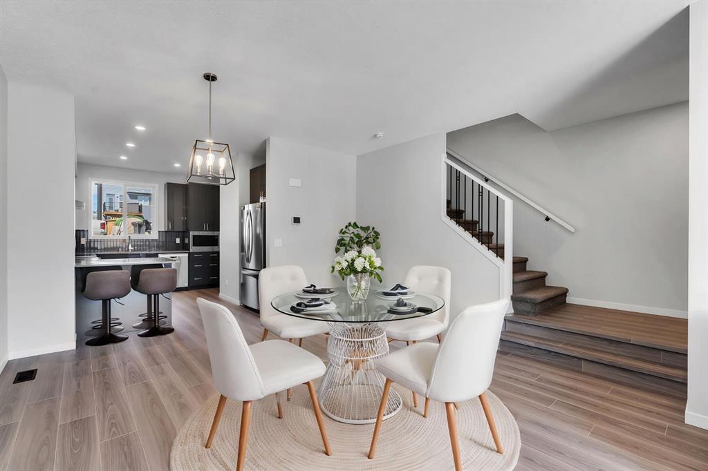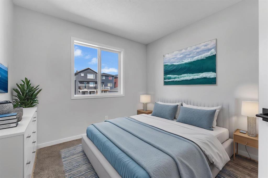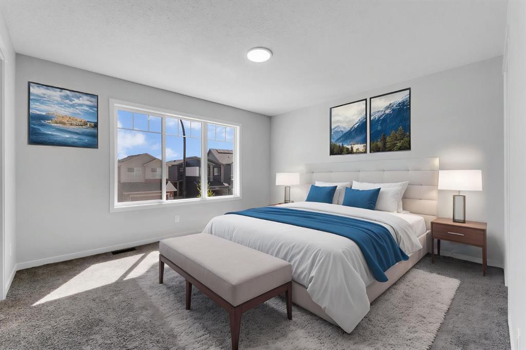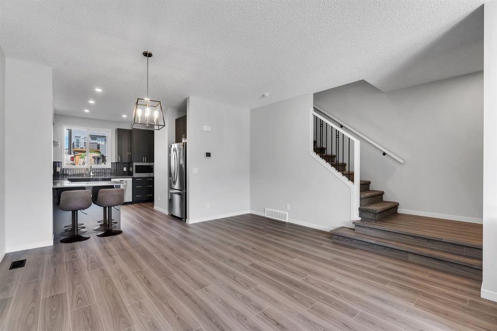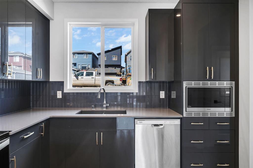 Welcome to the most affordable home currently available in Glacier Ridge, NW Calgary — and it’s not just about the price. This stunning 2024-built gem offers an unbeatable combination of modern elegance, luxury upgrades, and functional design that truly sets it apart. Featuring 3 spacious bedrooms and 2.5 beautifully finished bathrooms, this home has been thoughtfully crafted for comfort and style. From the moment you arrive, the striking curb appeal draws you in. Step inside and you’re greeted by an unusually wide and expansive living area — a rare find that offers incredible space for both entertaining and everyday living. The designated dining space flows seamlessly into the show-stopping gourmet kitchen, where glossy upgraded cabinetry with gold handles, sleek quartz countertops, and a designer backsplash create a sophisticated vibe. The chimney-style hood fan, built-in microwave, and double-door refrigerator add both style and convenience. The peninsula adds extra seating and prep space, and yes — even the soap dispenser has been upgraded for that extra touch of functionality.Upstairs, the master bedroom is your private retreat with a luxurious standing shower ensuite, while the other bathrooms are equally refined with high-end finishes. The laundry area stands out with designer tiles and extra built-in storage for maximum efficiency.