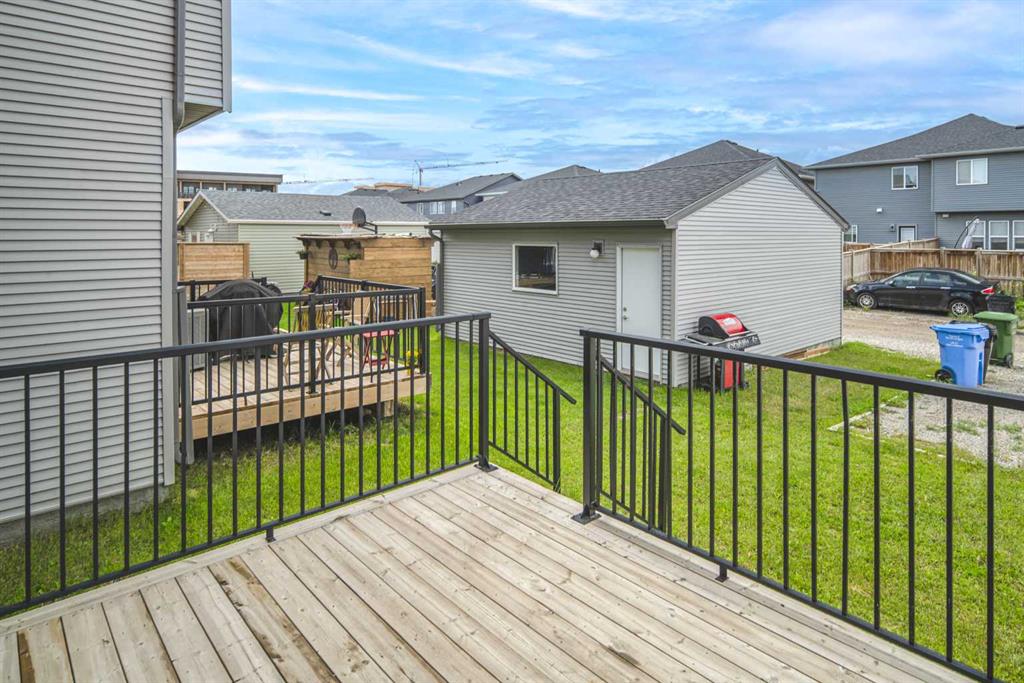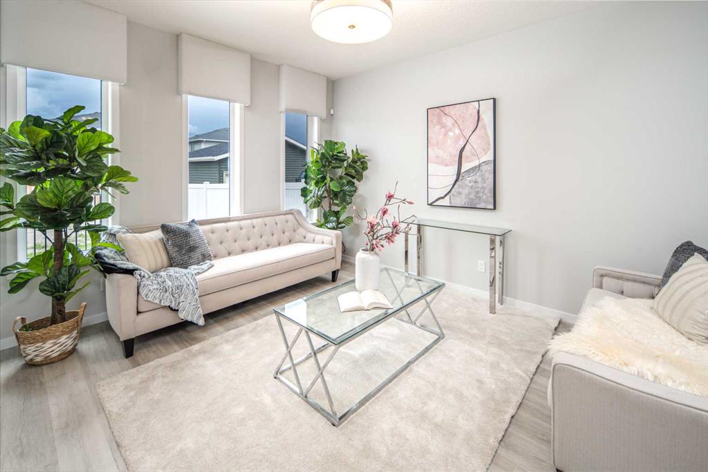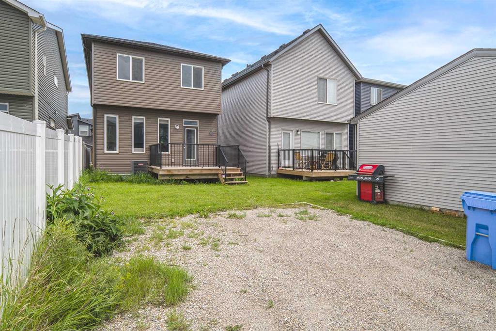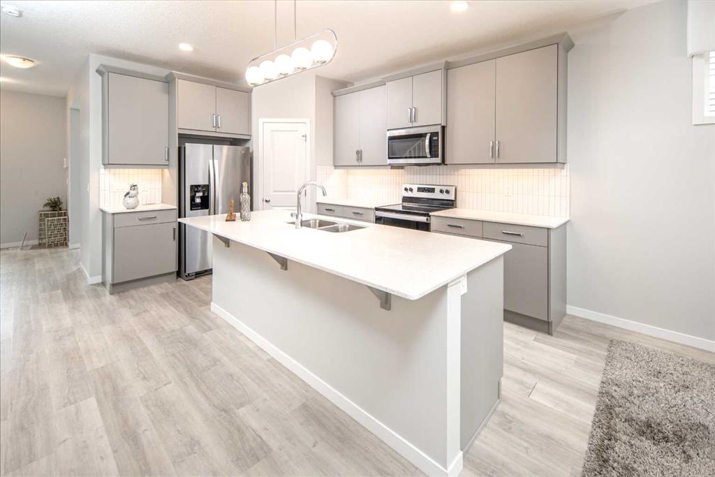 This stunning former showhome in Wolf Willow offers 1,800 sq. ft. of elegant living space with high-quality finishes. Enjoy luxury vinyl plank flooring on the main level, complemented by 9-foot ceilings and upgraded light fixtures. The modern kitchen features quartz countertops, upgraded stainless steel appliances, a tiled backsplash, and a dramatic central island with an eating bar, all bathed in sunlight in the inviting dining area. The upper floor boasts three spacious bedrooms, a bonus room, a conveniently located laundry room, and two full bathrooms. The unfinished basement provides ample storage or the perfect opportunity for customization. Outside, you’ll find two parking pads in the backyard. Located just steps from Fish Creek Park and nearby various amenities, including shopping centers, a movie theatre, grocery stores, coffee shops, and popular restaurants, this home offers easy access to major routes and is only a 30-minute drive to downtown. Whether you’re a first-time homebuyer or an investor, this property is a fantastic opportunity!