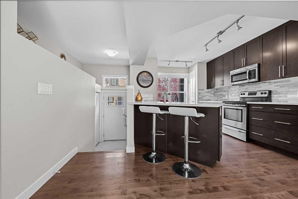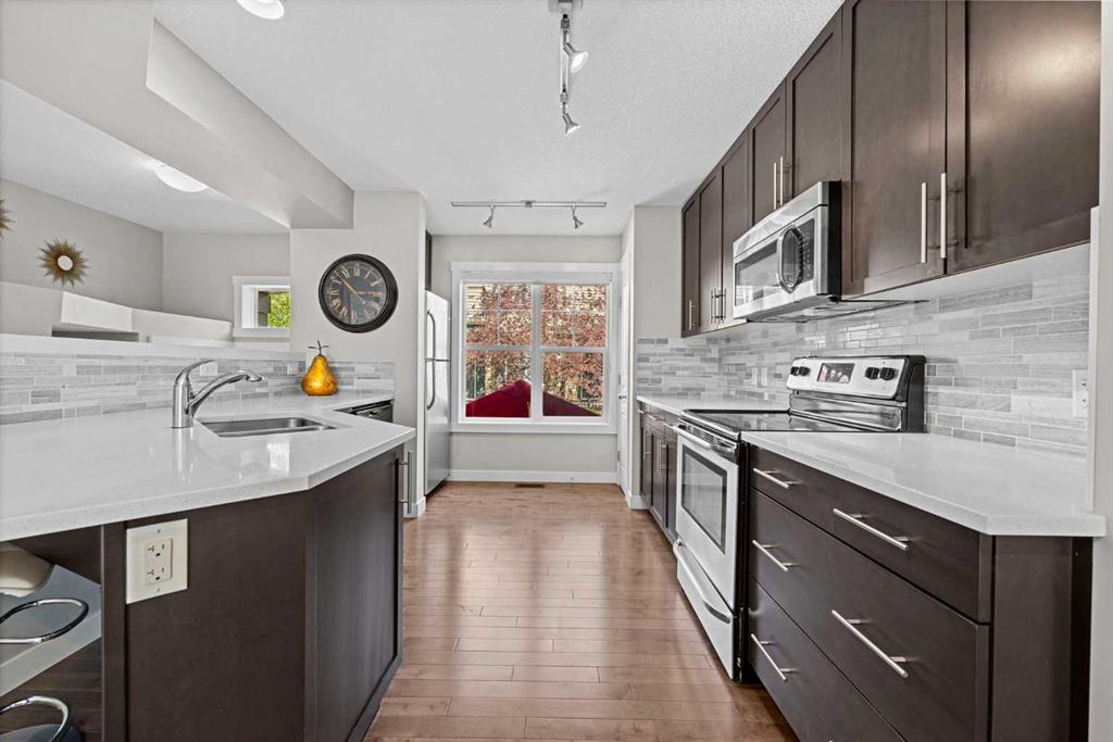 Inside, you’ll find a bright, open-concept layout, with a spacious living and dining area perfect for both relaxing and entertaining. The modern kitchen features quartz countertops, stainless steel appliances, and ample cabinetry, complemented by large windows that fill the home with natural light.