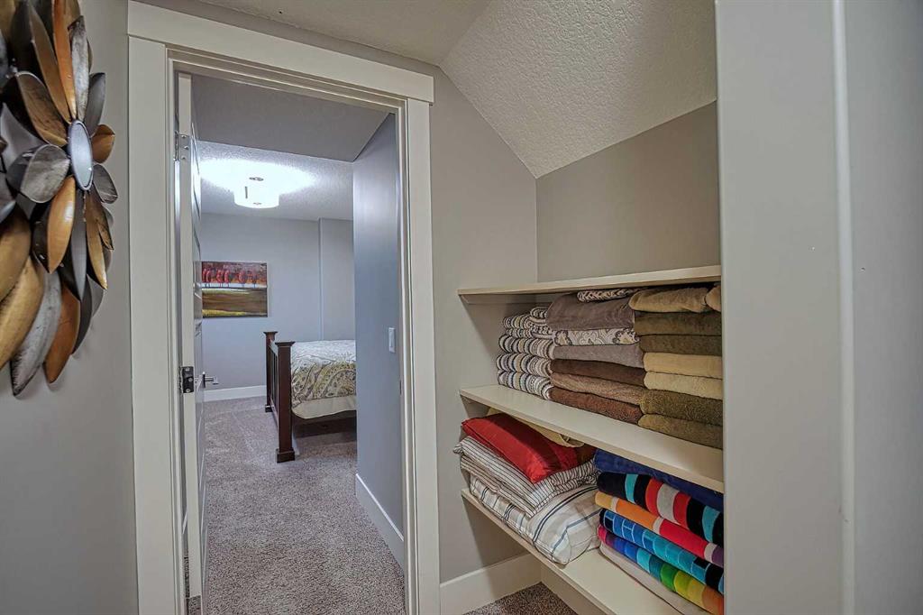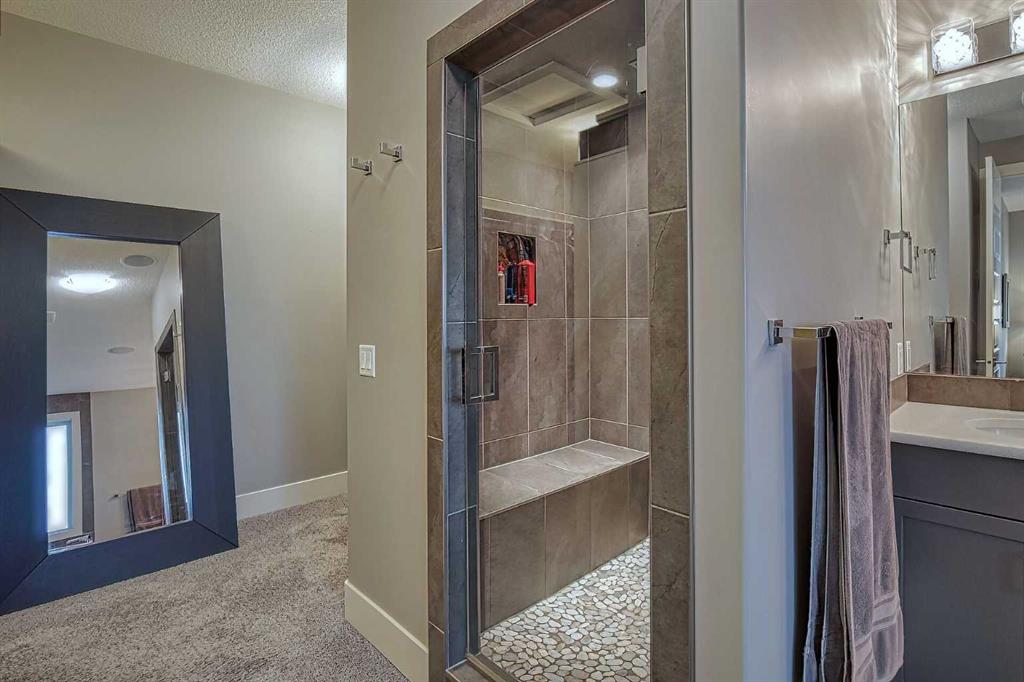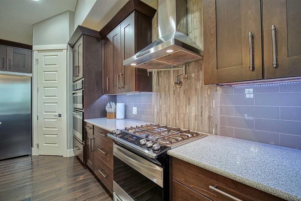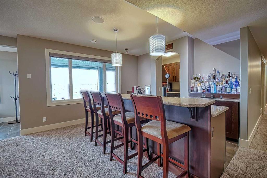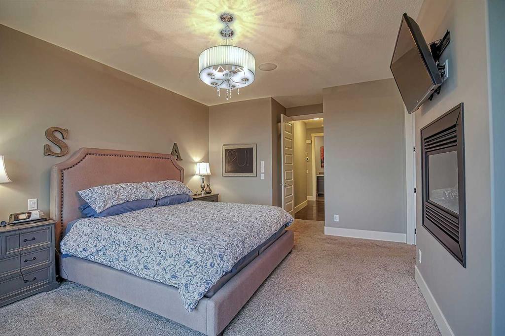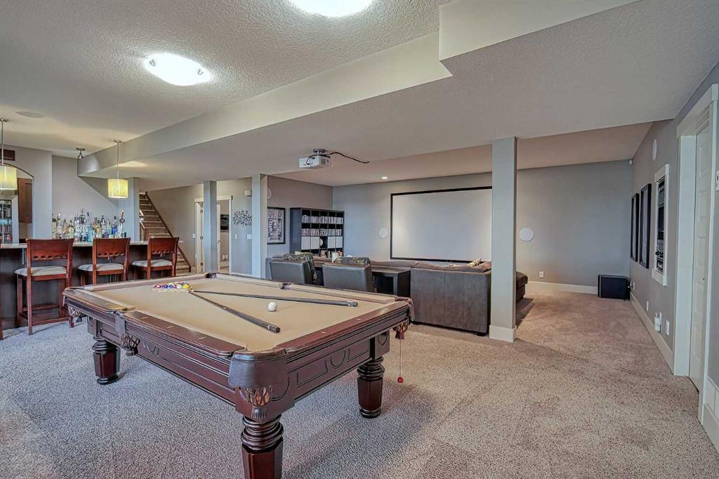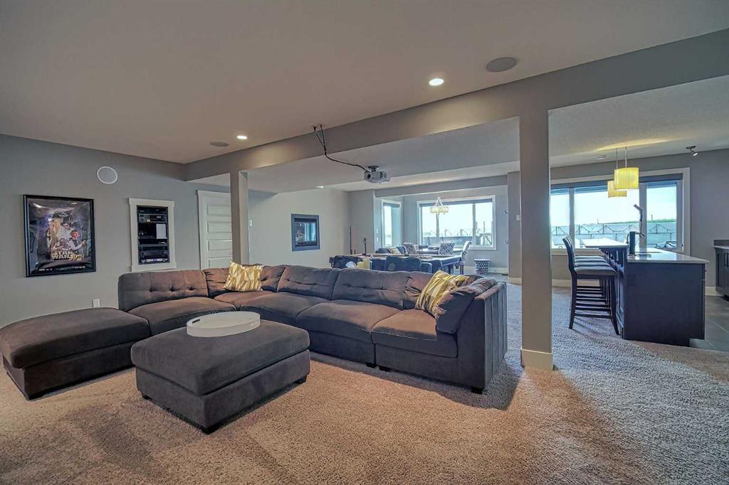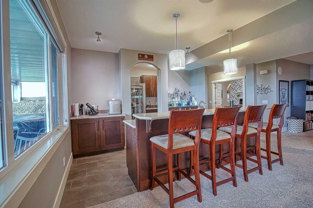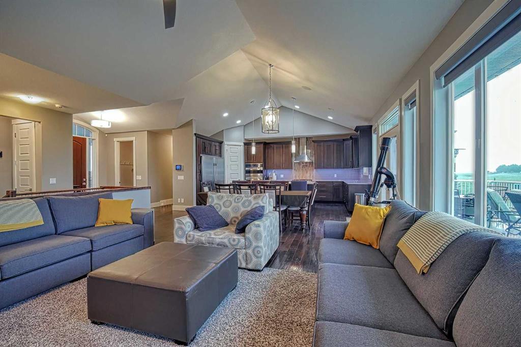 The built-in fridge and freezer combo is a generous in size, complemented by two ovens including a built-in microwave, a gourmet gas range with another oven, and a convenient pasta faucet. Hand-scraped hardwood floors add sophistication while maintaining a cozy, farm-inspired feel.This thoughtfully designed kitchen offers expansive quartz counters, abundant cabinetry, and a hidden gem — a walk-through butler’s pantry, providing even more space for your culinary essentials. Double doors open to a spacious deck, perfect for lively gatherings or quiet evenings soaking in the peaceful farm views. In the primary suite, expansive windows frame the rolling landscape, making the view a part of the room itself. A gas fireplace flickers warmly on cooler nights, while a French door leads you directly to the patio for a breath of fresh country air. The luxurious 5-piece ensuite offers a spa-like retreat — a deep soaker tub set beside the fireplace invites indulgent baths, while double sinks, a generous walk-in shower with built-in seating, and a private water closet provide both comfort and function. The grand walk-in closet offers ample space to keep everything perfectly organized. The Main floor features a second bedroom that provides guests or family with their own retreat, complete with a walk-in closet and an elegant 4-piece ensuite. The hall area includes a 2-piece bath, organized laundry room, and mudroom. Downstairs, a media room with a 135” screen and 4K projector is perfect for movie nights. There’s also space for a pool table (negotiable), poker table area and a full wet bar with quartz counters, sink, dishwasher, beer keg with tap, wine storage, and a commercial beverage fridge. This level has two bedrooms with walk-in closets, a 4-piece bath, and a walkout to a covered patio with hot tub, heated above-ground pool, and fire pit. A massive retaining wall ensures privacy, and a shed provides garden storage. There are underground sprinklers. Included are 22 built-in speakers with Control 4 automation, five TVs with mounts, projector and screen & cameras. Come experience Executive Country Living.