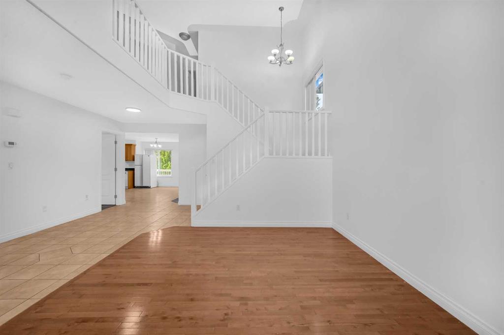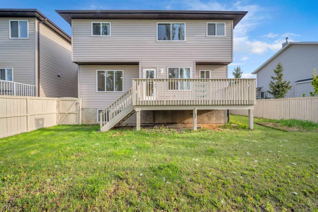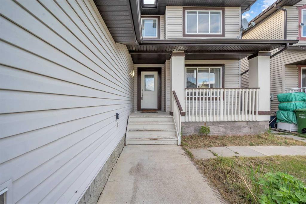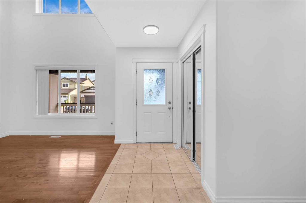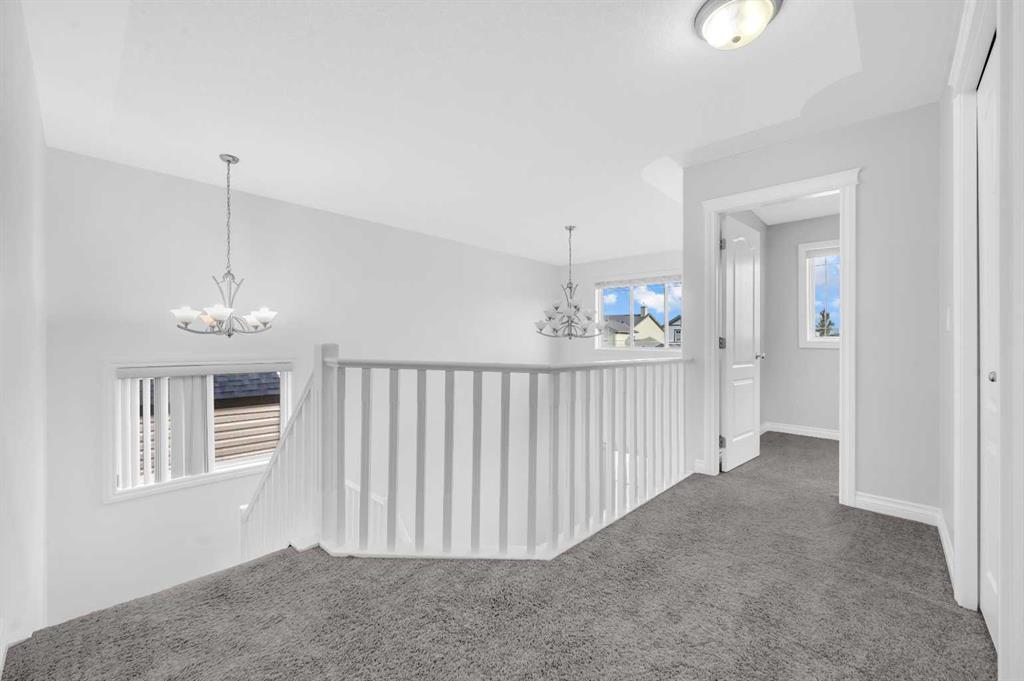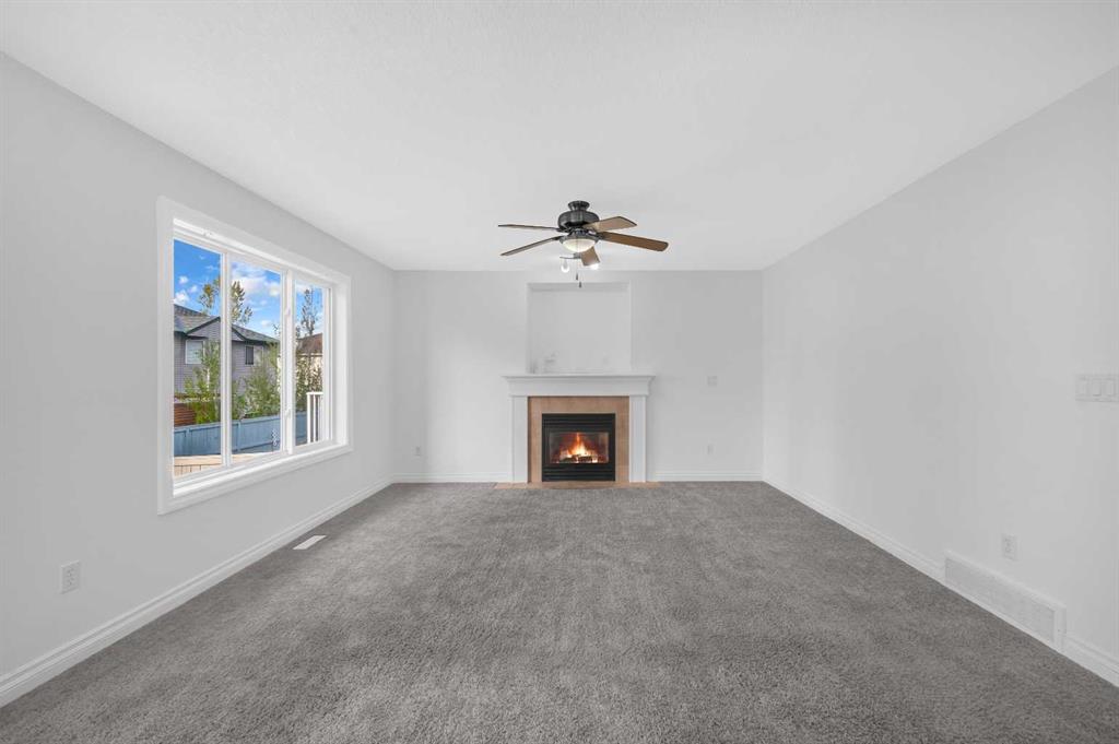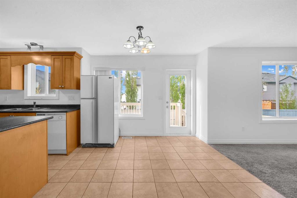Welcome to this beautifully maintained 2-storey home with a triple-car garage and total parking for 6 vehicles, located in the sought-after community of Canals in Airdrie. This open-to-below floor plan features large windows, hardwood and tile flooring, a spacious kitchen, and a cozy living area with a gas fireplace. A main floor bedroom with a full bathroom adds convenience and flexibility. Step out from the dining area to a large, private landscaped backyard with a good-sized deck — perfect for outdoor living.