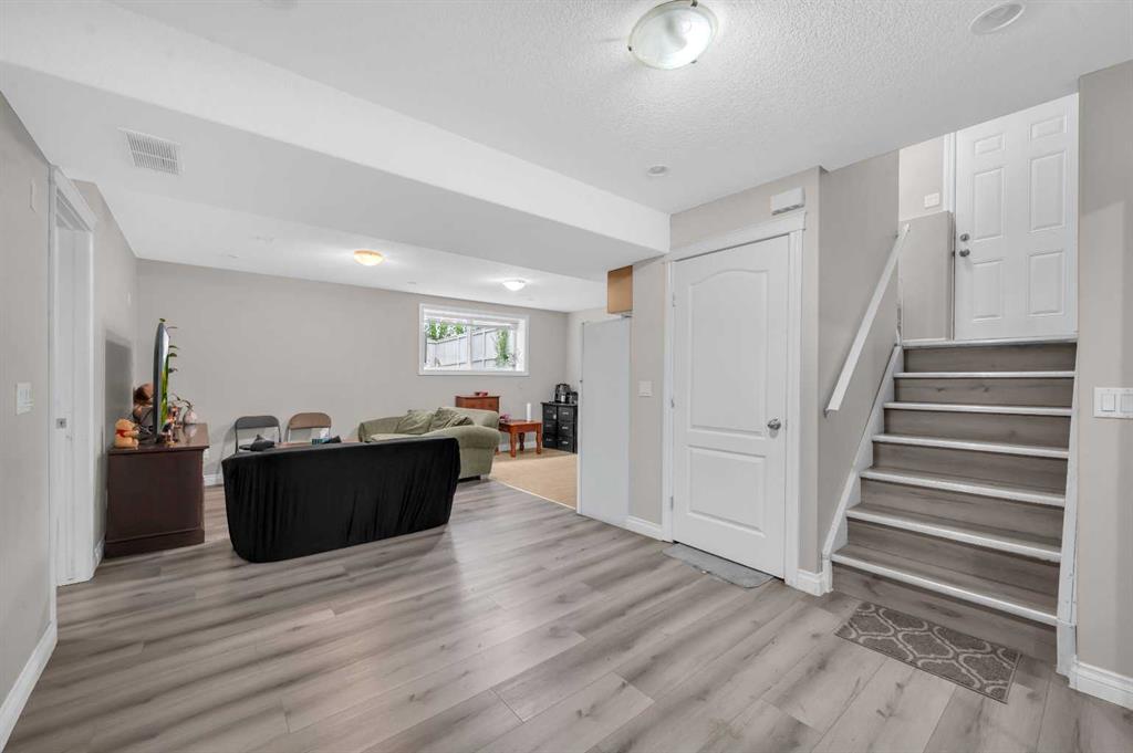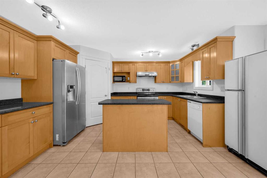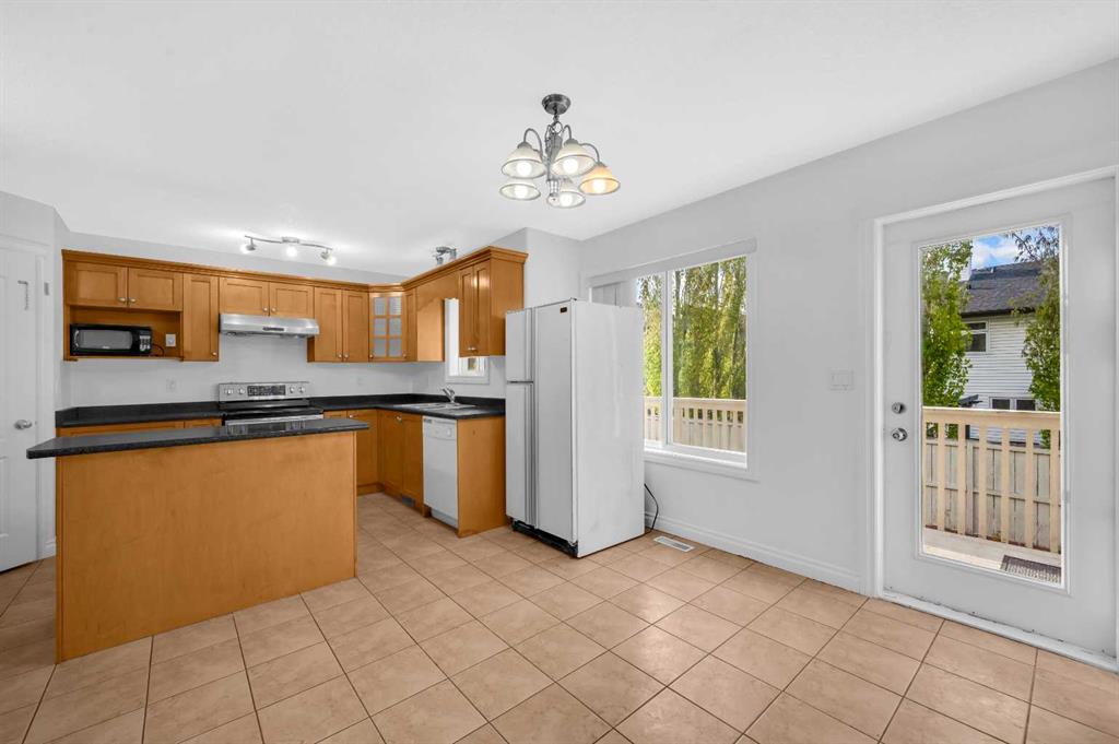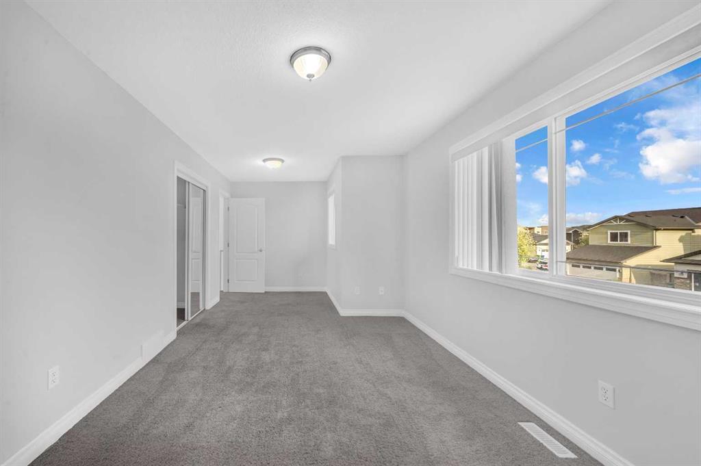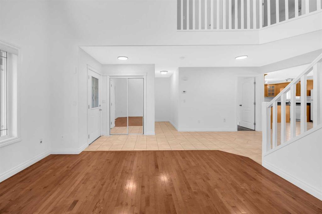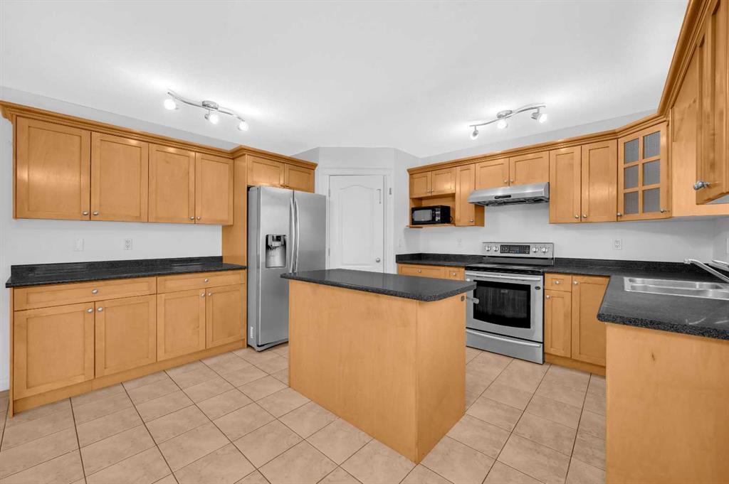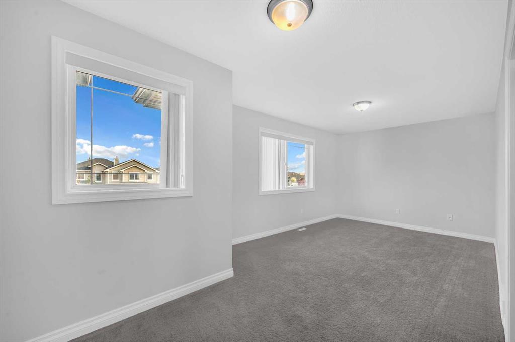 Welcome to this beautifully maintained 2-storey home with a triple-car garage and total parking for 6 vehicles, located in the sought-after community of Canals in Airdrie. This open-to-below floor plan features large windows, hardwood and tile flooring, a spacious kitchen, and a cozy living area with a gas fireplace. A main floor bedroom with a full bathroom adds convenience and flexibility. Step out from the dining area to a large, private landscaped backyard with a good-sized deck — perfect for outdoor living.