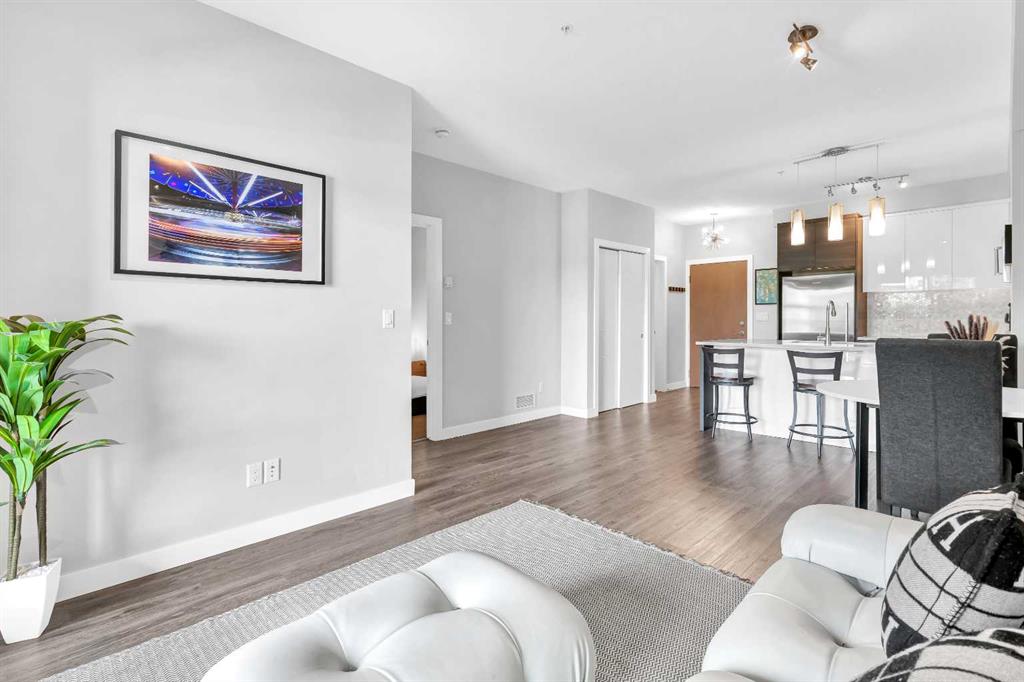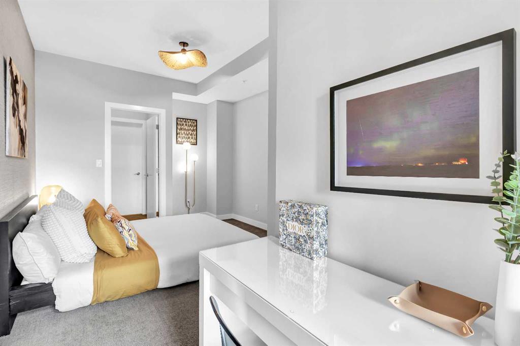 Welcome home to 95 Burma Star Road SW #3304—your private sanctuary in the heart of Calgary’s most dynamic community! Discover contemporary elegance in this executive 2 bedroom + 1 bath residence, perfectly situated in Calgary’s coveted Currie Barracks enclave. Showcasing brick and stucco façades with striking modern lines, the building’s architectural curb appeal extends into a beautifully landscaped central courtyard and private patio decks. *Seamless Entertaining*: Expansive living area anchored by top-rated sound-proof flooring, bathed in natural light, and flowing onto your balcony—ideal for morning coffee or evening cocktails. *Gourmet European Kitchen*: Quartz countertops, dazzling backsplash, LED under-cabinet illumination, and premium stainless-steel appliances, including a gas-range cooktop. *Spa-Inspired Bath & Retreat*: Spa-like bathroom with a luxurious walk-through closet connecting the grand master suite to the ensuite. *Premium Touches*: In-suite laundry, high ceilings, and a titled heated underground parking stall with private cage-storage locker just in front of your parking. *Wellness & Recreation*: Secure bike room, gleaming car-wash bay, and verdant courtyard sitting decks. *Convenience & Guest Parking*: numerous underground visitor stalls, plus easy elevator access to your foyer. *Historic Meets Modern*: Currie Barracks blends heritage charm with sleek, new-build sophistication—just steps to Mount Royal University’s leafy campus and vibrant Officers’ Garden. Plus close proximity to Top Rated Schools such as Master’s Academy & College, Clear Water Academy, etc. *World-Class Shopping & Dining*: Westbrook Mall (5 min drive with LRT access), Marda Loop (7 min drive)—Calgary’s premier outdoor dining and boutique district, Signal Hill Towne Centre (8 min drive)—over 50 retailers, upscale grocers, and eateries in an open-air village setting. *Active Outdoors*: Golf enthusiasts will love nearby Shaganappi Point Golf Course and C-Train access at Shaganappi Point Station, whisking you downtown in minutes. *Effortless Commute*: Only 7 minutes Drive to Downtown Calgary via Bow Trail or Easy Access via LRT line—your gateway to the energy of the city without sacrificing a serene home address. Embrace an elevated urban lifestyle where luxury finishes, thoughtful design, and a world of amenities converge. Call your favorite Realtor today to book a showing!