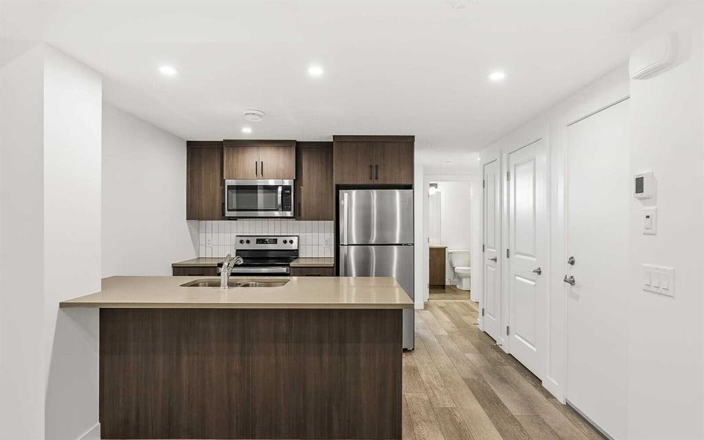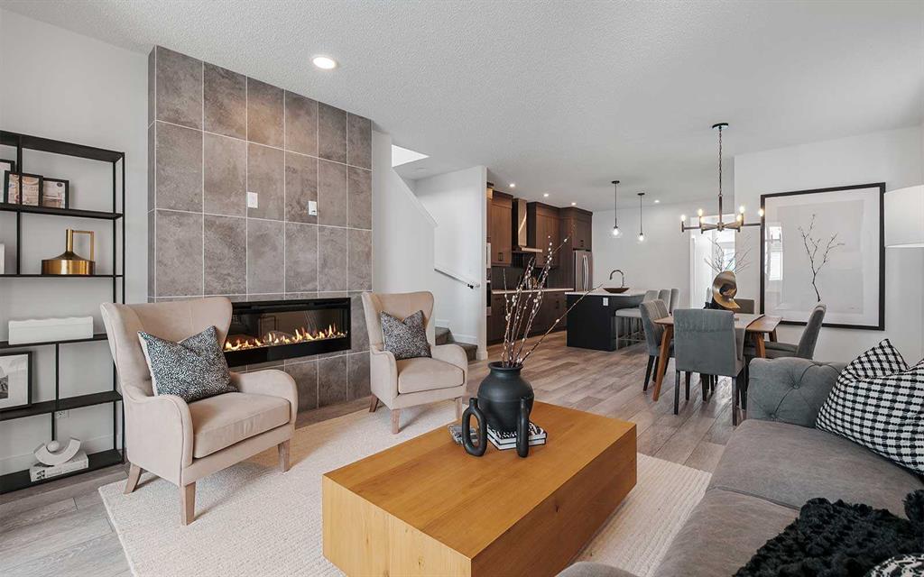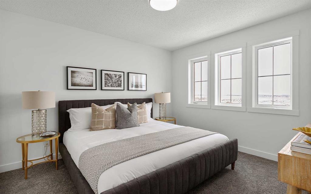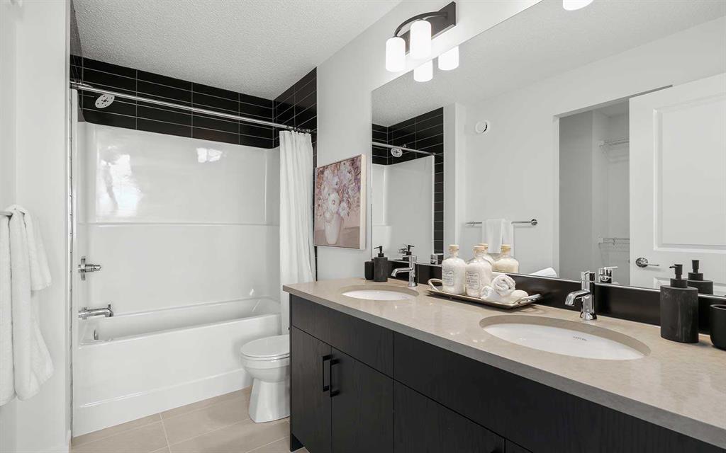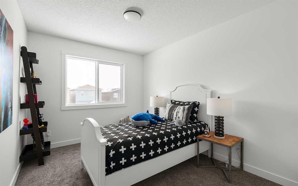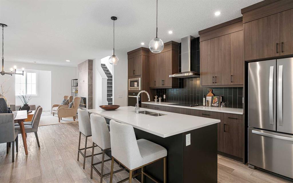 The beautiful new ‘Portland’ model by Brookfield Residential offers 1,900 square feet of living space + a legal 2 bedroom basement suite. Situated in the heart of Calgary’s newest community, Starling, this brand new home features 2 living areas, a home office/flex space on the main level, 3 bedrooms, 2.5 bathrooms and a fully legal 2 bedroom basement suite that is accessed by its own private entrance! The expansive great room at the front of the home has a wall of west-facing windows allowing for natural light to flow through the main level all evening long. The central kitchen is complete with a suite of stainless steel appliances including a chimney hood fan and built-in microwave, a large island with additional seating space and a full walk-in pantry with ample storage space. The kitchen opens to both the living and dining areas – offering an open concept design that is ideal for entertaining. Located at the back of the home is a private flex-space, ideal for a home office of children’s play space, that overlooks the backyard. Off of the rear entrance is a walk-in coat closet and two piece bathroom, completing the main level. On the upper level, a central bonus room with a window separates the primary suite from the secondary bedrooms and provides the perfect TV room in addition to the main level great room. The primary suite spans nearly 12’x12′ and is complete with a large walk-in closet and private ensuite with walk-in shower. Two more bedrooms, a full bathroom and separate laundry room complete the upper level of this home – offering space for a growing family without the compromise of everyday conveniences. The legal 2-bedroom basement suite has its own private entrance and features a central kitchen with peninsula seating, a living room, 2 bedrooms, a full bathroom and laundry + storage space. Completing this home is a fully private backyard with double parking pad. Builder warranty and Alberta New Home Warranty included with this new home. *Please note: Photos are from a show home model and are not an exact representation of the property for sale.