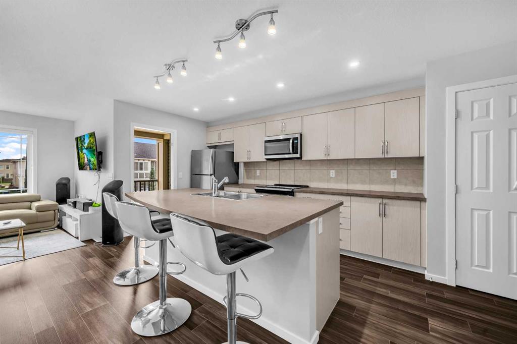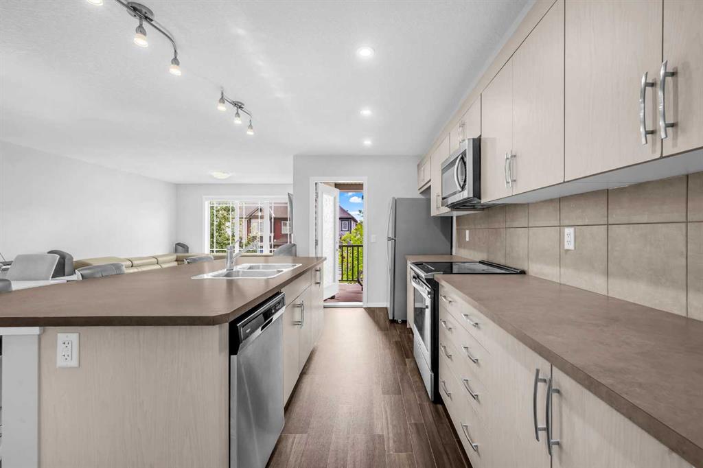 Welcome to this modern three-storey townhouse in Cityscape (NE Calgary), offering 1,341 sq ft of well-designed living space. The contemporary kitchen features quartz countertops, stainless steel appliances, and ample cabinetry. Upstairs, discover two spacious bedrooms, including a comfortable primary with excellent closet space and attached full bathroom. The convenience of upper-floor laundry makes daily routines simple. Parking is a breeze with a single attached garage plus driveway parking. Exceptional value, a fantastic location, and low condo fees round out the package.