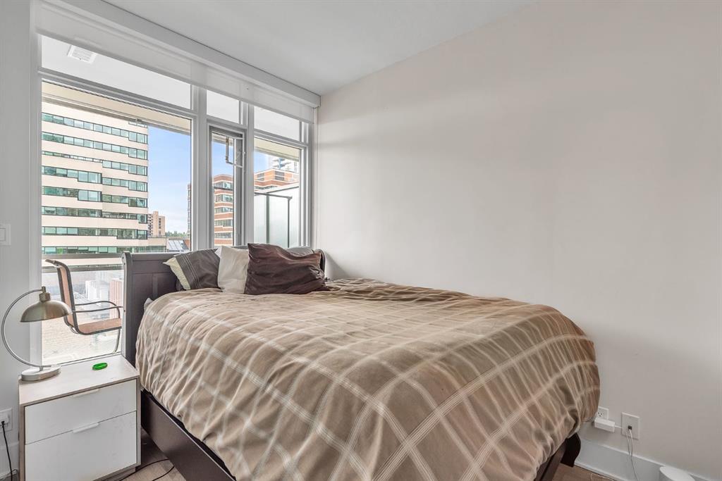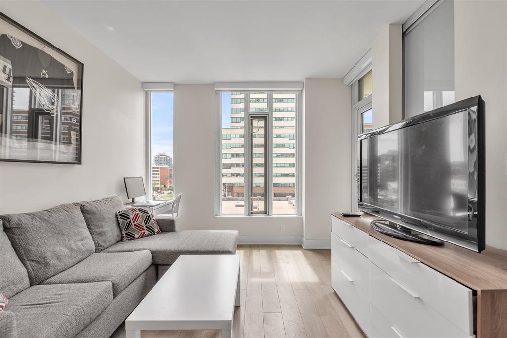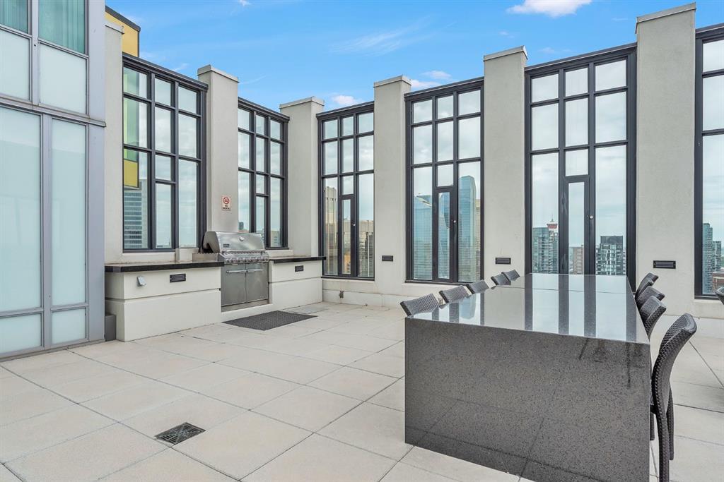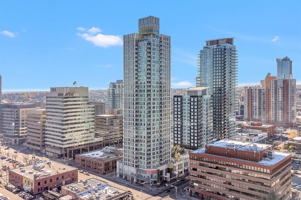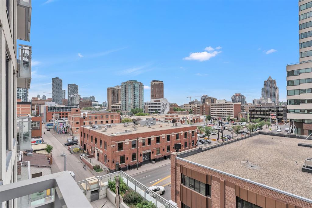 Experience stylish city living in this beautifully appointed 1-bedroom, 1-bathroom condo in the sought-after Mark on 10th. Intelligently designed space, contemporary finishes, and access to top-tier building amenities in the heart of Calgary’s Beltline. The open-concept layout is bright and welcoming, with floor-to-ceiling windows and 9-foot ceilings creating an airy, expansive feel. A modern kitchen features full-height white cabinetry, quartz countertops, a gas cooktop, and streamlined built-in appliances. Step out onto the balcony, accessible directly from the living room. It’s the perfect place to enjoy your morning coffee or unwind in the evening while taking in the city skyline. The bedroom comfortably fits a queen bed and offers ample closet space, while large windows fill the room with natural light. The sleek 3-piece bathroom features modern fixtures and a glass walk-in shower, providing a clean and refreshing finish. In-suite laundry, air conditioning, a titled underground parking stall, and a private storage locker round out the features of this move-in ready home. Residents of Mark on 10th enjoy exclusive access to premium amenities, including a rooftop hot tub and BBQ area with skyline views, a fully equipped fitness centre with sauna and steam room, a stylish indoor lounge with games and media space, 24-hour concierge service, guest suite, and secure underground visitor parking. With grocery stores, transit, restaurants, and the energy of 17th Avenue just steps away, this condo offers the best of downtown living—modern design, walkability, and an unbeatable location.