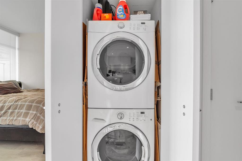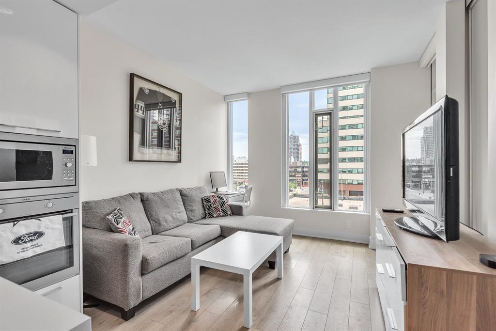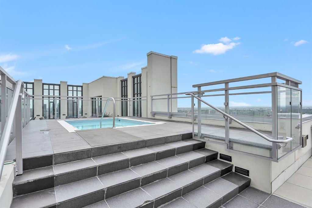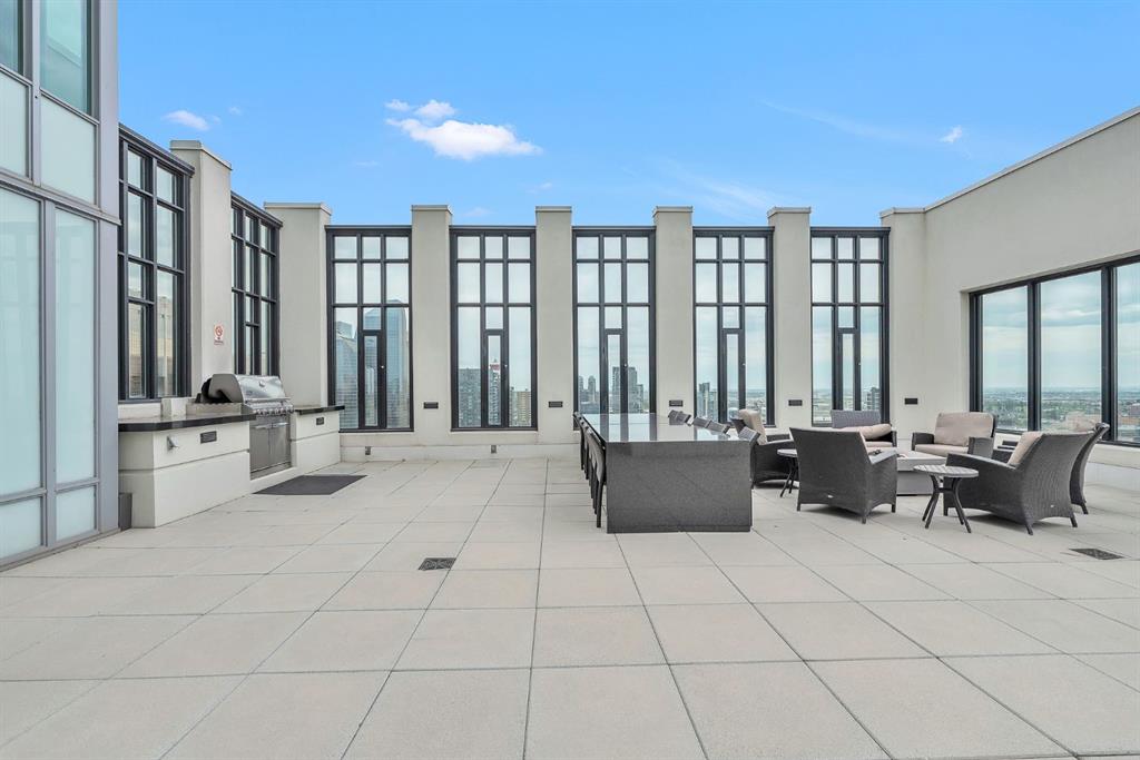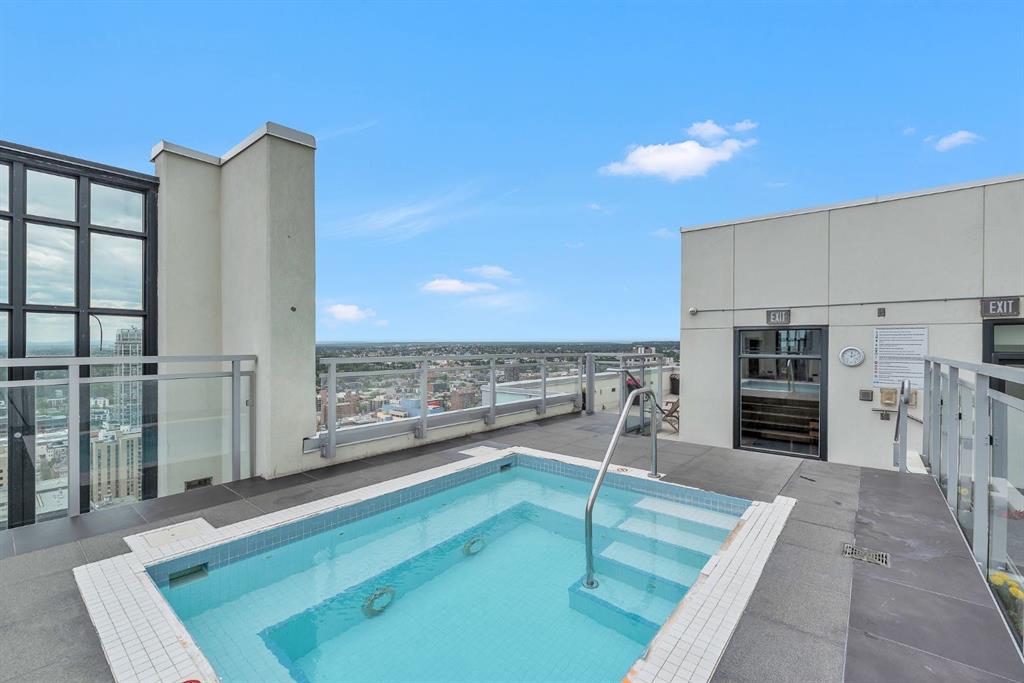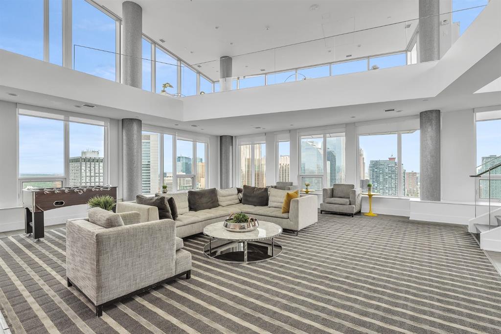 Experience stylish city living in this beautifully appointed 1-bedroom, 1-bathroom condo in the sought-after Mark on 10th. Intelligently designed space, contemporary finishes, and access to top-tier building amenities in the heart of Calgary’s Beltline. The open-concept layout is bright and welcoming, with floor-to-ceiling windows and 9-foot ceilings creating an airy, expansive feel. A modern kitchen features full-height white cabinetry, quartz countertops, a gas cooktop, and streamlined built-in appliances. Step out onto the balcony, accessible directly from the living room. It’s the perfect place to enjoy your morning coffee or unwind in the evening while taking in the city skyline. The bedroom comfortably fits a queen bed and offers ample closet space, while large windows fill the room with natural light. The sleek 3-piece bathroom features modern fixtures and a glass walk-in shower, providing a clean and refreshing finish. In-suite laundry, air conditioning, a titled underground parking stall, and a private storage locker round out the features of this move-in ready home. Residents of Mark on 10th enjoy exclusive access to premium amenities, including a rooftop hot tub and BBQ area with skyline views, a fully equipped fitness centre with sauna and steam room, a stylish indoor lounge with games and media space, 24-hour concierge service, guest suite, and secure underground visitor parking. With grocery stores, transit, restaurants, and the energy of 17th Avenue just steps away, this condo offers the best of downtown living—modern design, walkability, and an unbeatable location.
