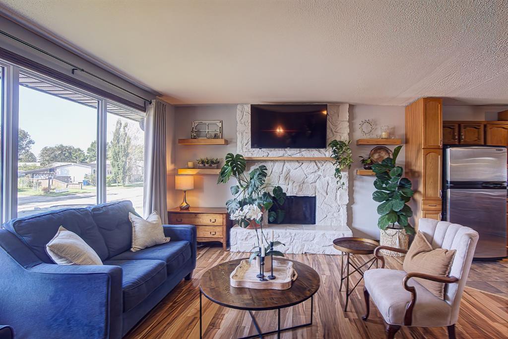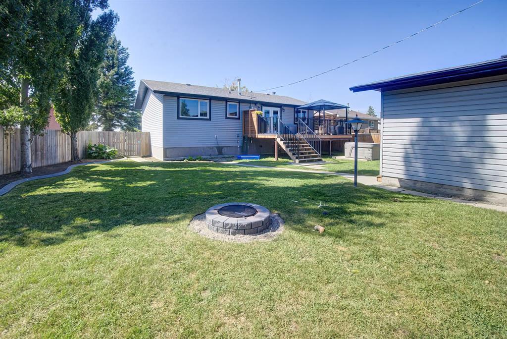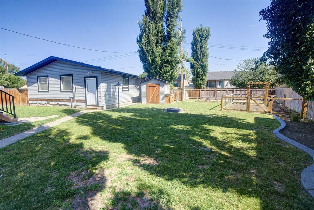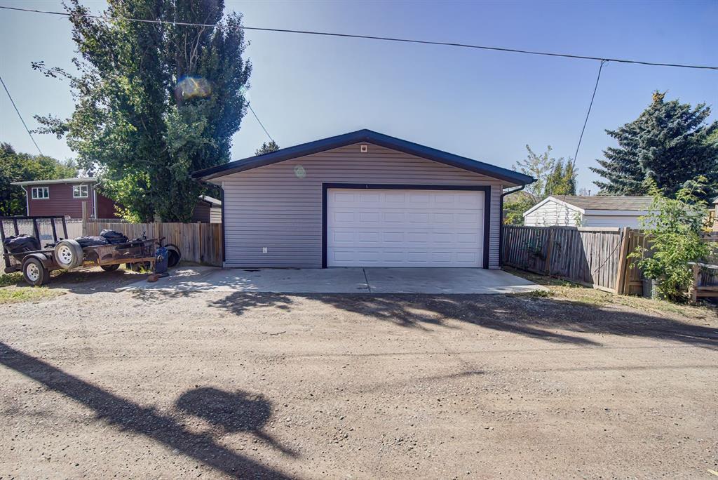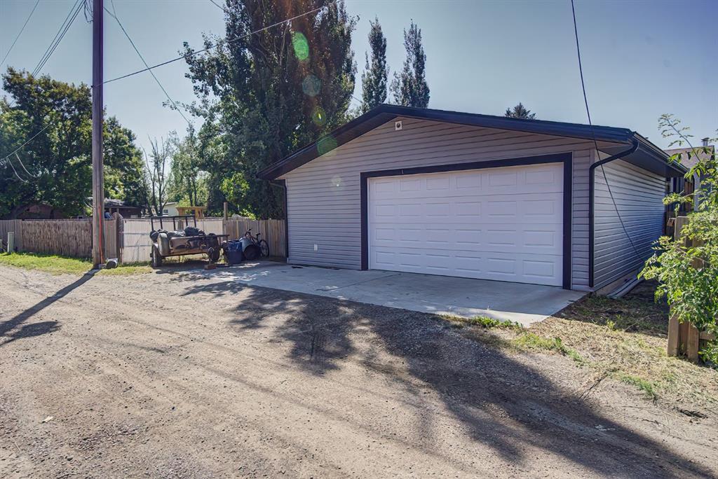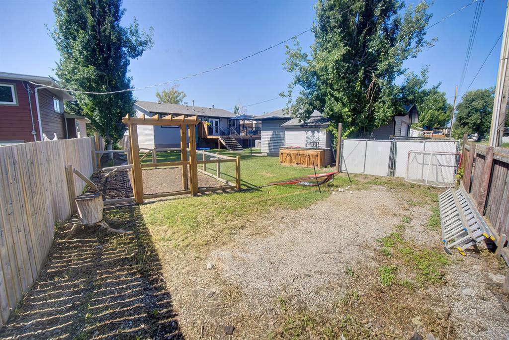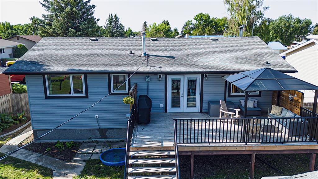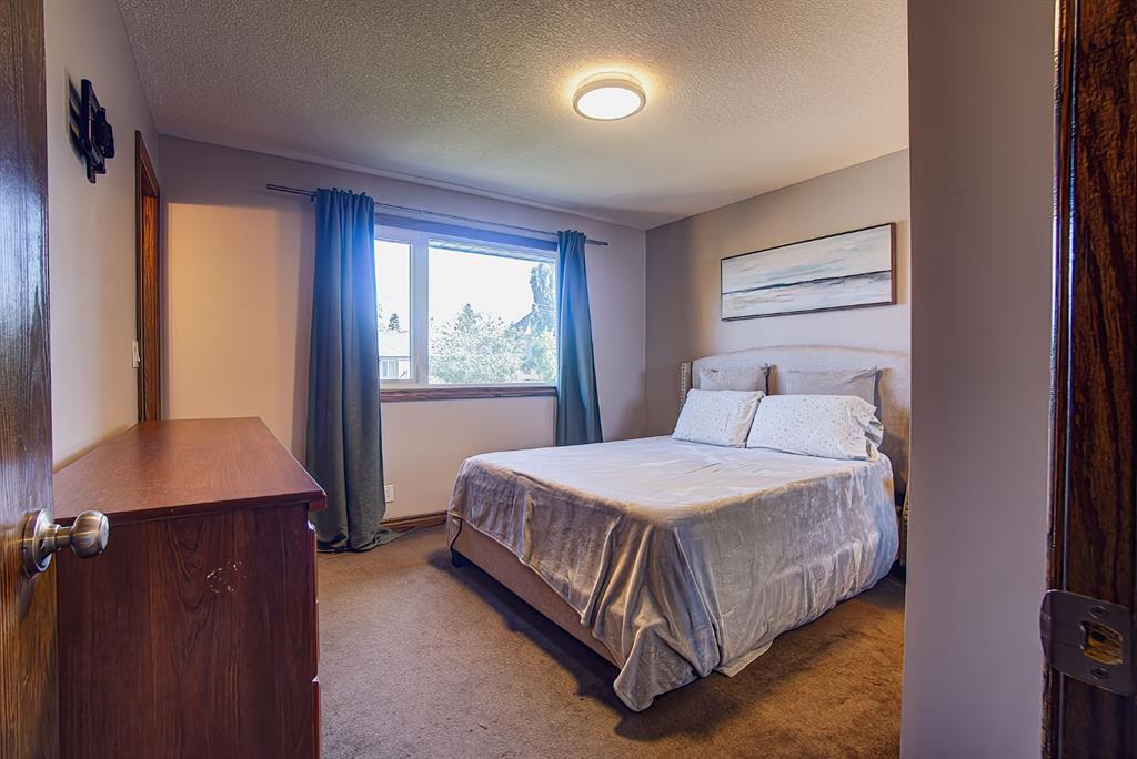Welcome to this well-maintained and upgraded bi-level home, ideally situated on a large, irregularly shaped lot with convenient back alley access. From the moment you step inside, you’ll appreciate the bright and open main floor featuring a spacious living room with large south-facing windows and a cozy wood-burning fireplace as the focal point. The open-concept layout flows seamlessly into the kitchen and dining area, perfect for everyday living and entertaining. The kitchen offers plenty of space with oak cabinetry, an eat-up counter, and a lovely view of the backyard. Step through the garden doors from the dining room onto your expansive back deck, complete with a pergola for shade—ideal for relaxing or summer gatherings. The main floor also includes a beautifully updated 4-piece bathroom and three comfortable bedrooms, including the primary suite with its own private 3-piece ensuite. Downstairs, the partially finished basement provides a fantastic opportunity to create additional living space, with a family room, 3-piece bathroom, storage room, and plenty of room to add extra bedrooms if needed. Outside, the fully fenced backyard is a dream for those needing space—whether it’s for kids, pets, toys, or RVs. You’ll also love the large detached garage, in floor heat with a sump—perfect for working year-round. Located not far from the Lions Park and within easy walking distance to downtown amenities and local schools, this home combines comfort, convenience, and potential.