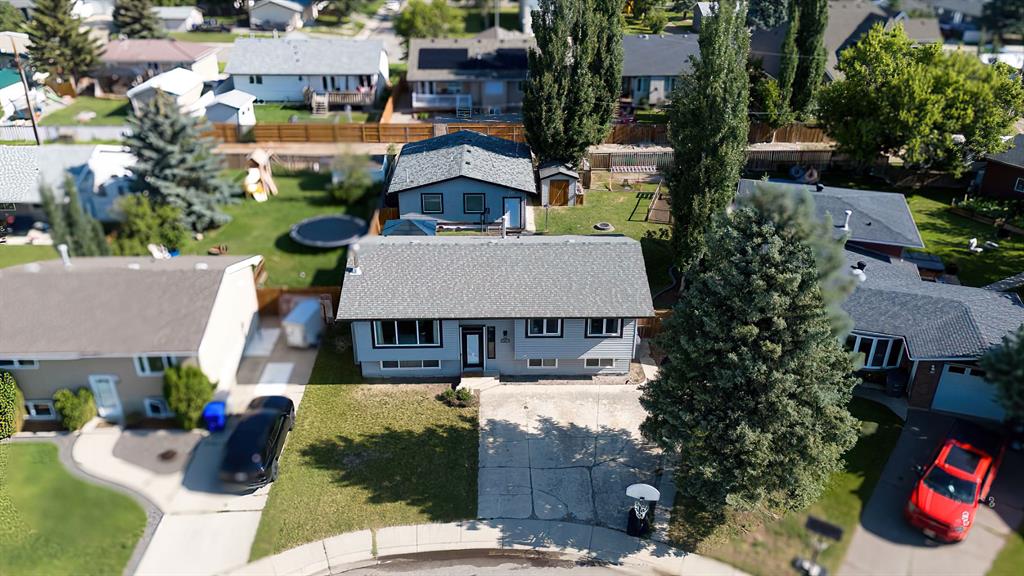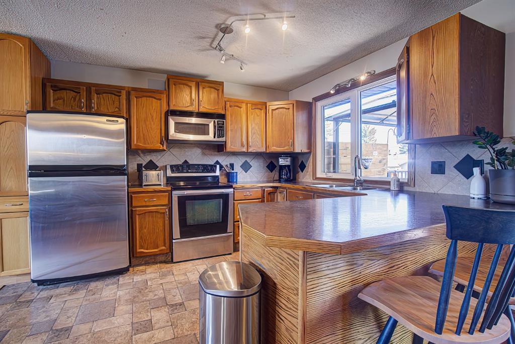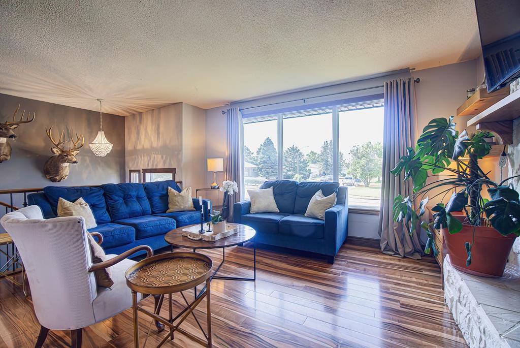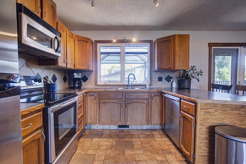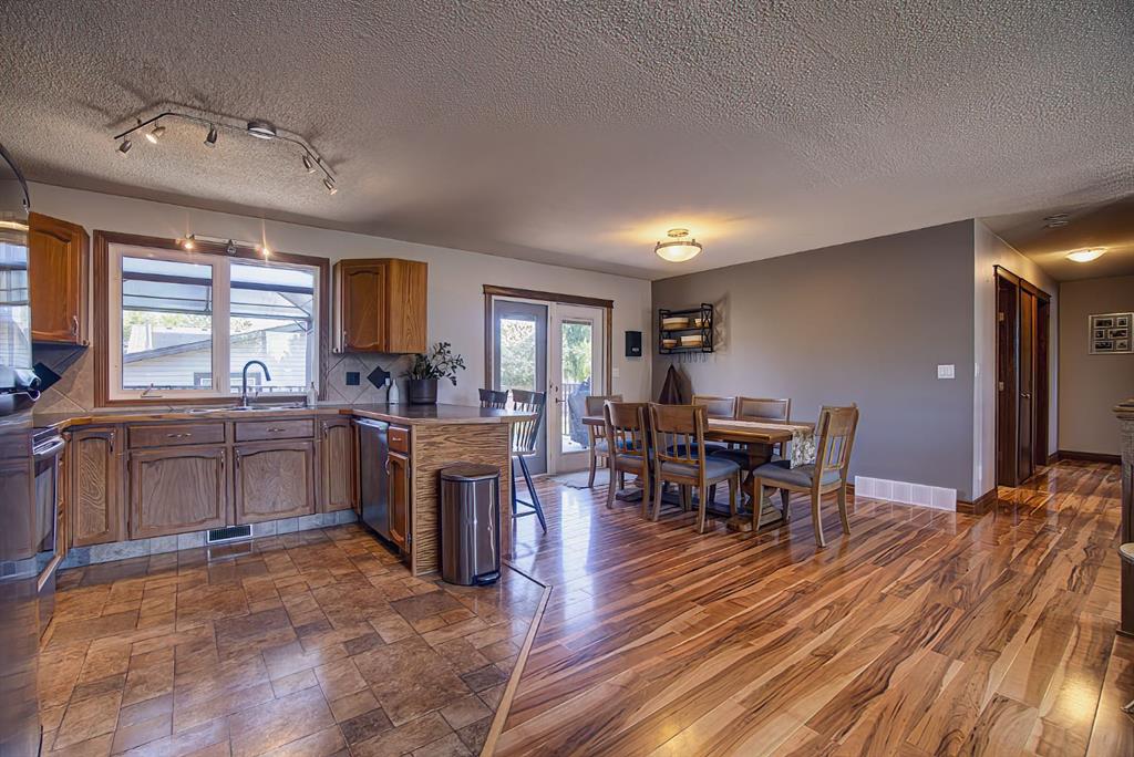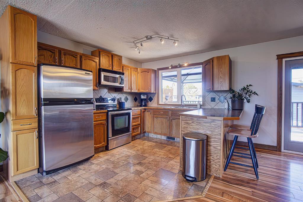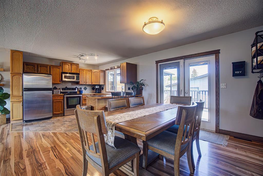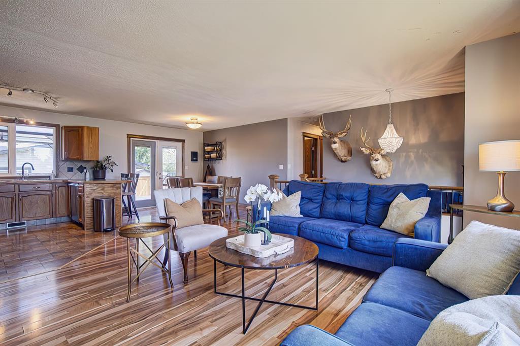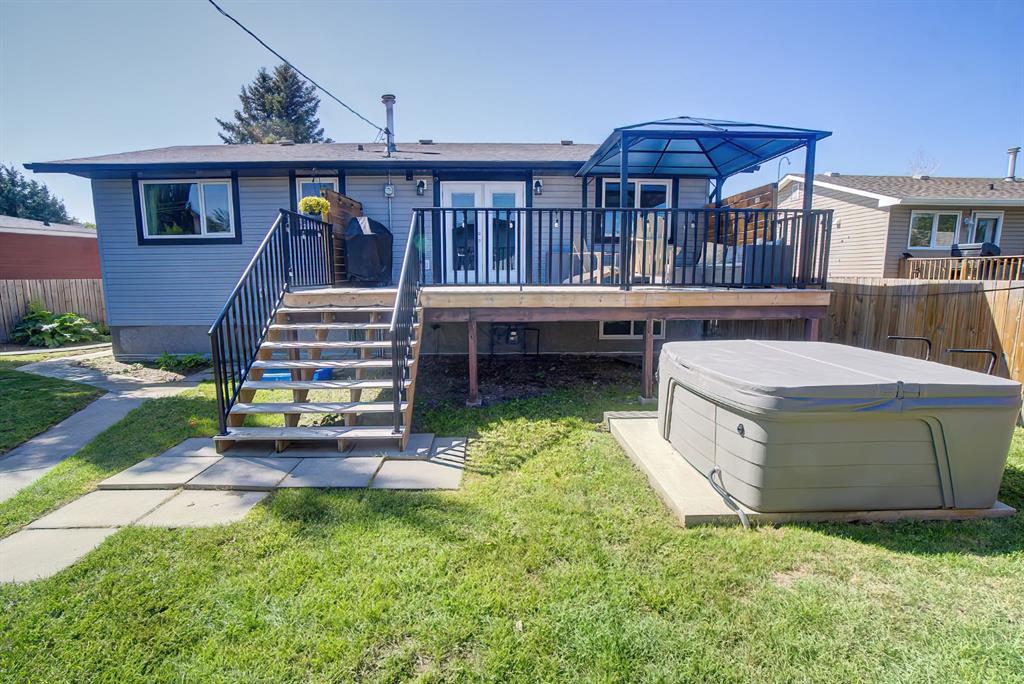 Welcome to this well-maintained and upgraded bi-level home, ideally situated on a large, irregularly shaped lot with convenient back alley access. From the moment you step inside, you’ll appreciate the bright and open main floor featuring a spacious living room with large south-facing windows and a cozy wood-burning fireplace as the focal point. The open-concept layout flows seamlessly into the kitchen and dining area, perfect for everyday living and entertaining. The kitchen offers plenty of space with oak cabinetry, an eat-up counter, and a lovely view of the backyard. Step through the garden doors from the dining room onto your expansive back deck, complete with a pergola for shade—ideal for relaxing or summer gatherings. The main floor also includes a beautifully updated 4-piece bathroom and three comfortable bedrooms, including the primary suite with its own private 3-piece ensuite. Downstairs, the partially finished basement provides a fantastic opportunity to create additional living space, with a family room, 3-piece bathroom, storage room, and plenty of room to add extra bedrooms if needed. Outside, the fully fenced backyard is a dream for those needing space—whether it’s for kids, pets, toys, or RVs. You’ll also love the large detached garage, in floor heat with a sump—perfect for working year-round. Located not far from the Lions Park and within easy walking distance to downtown amenities and local schools, this home combines comfort, convenience, and potential.