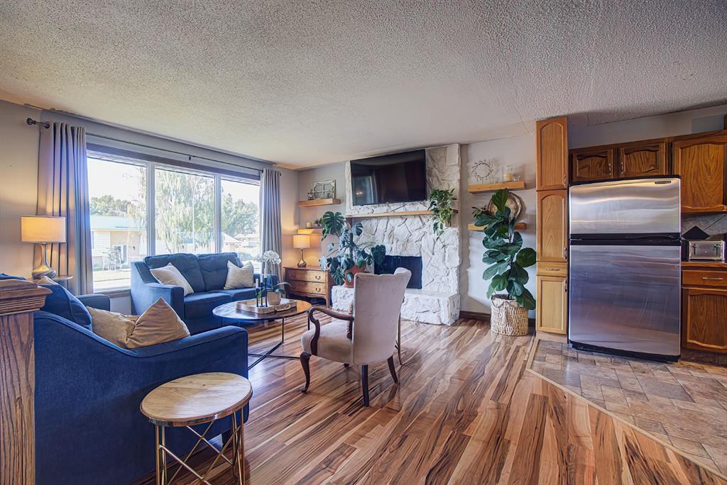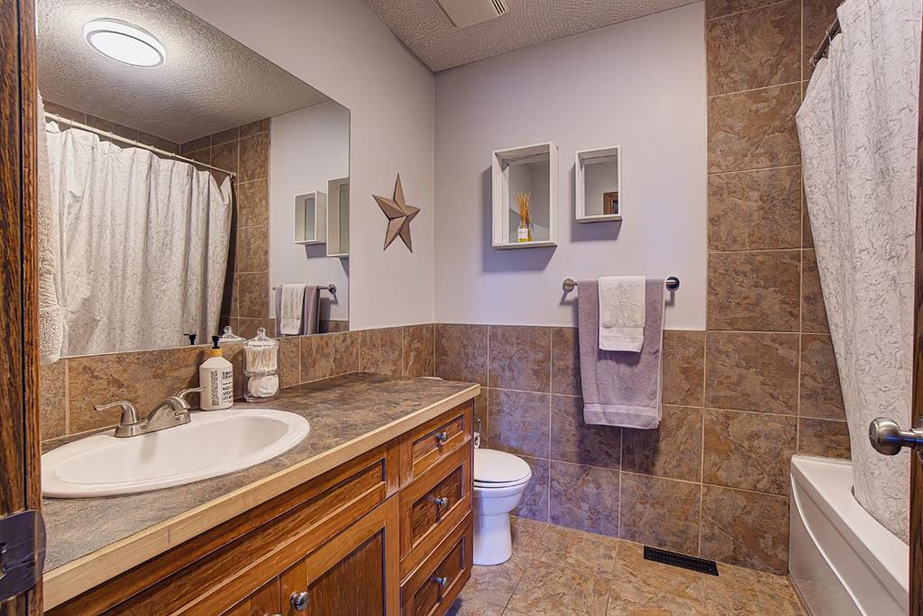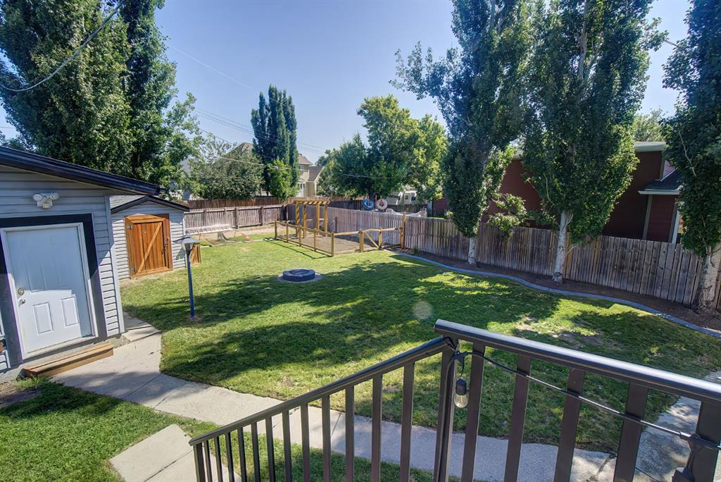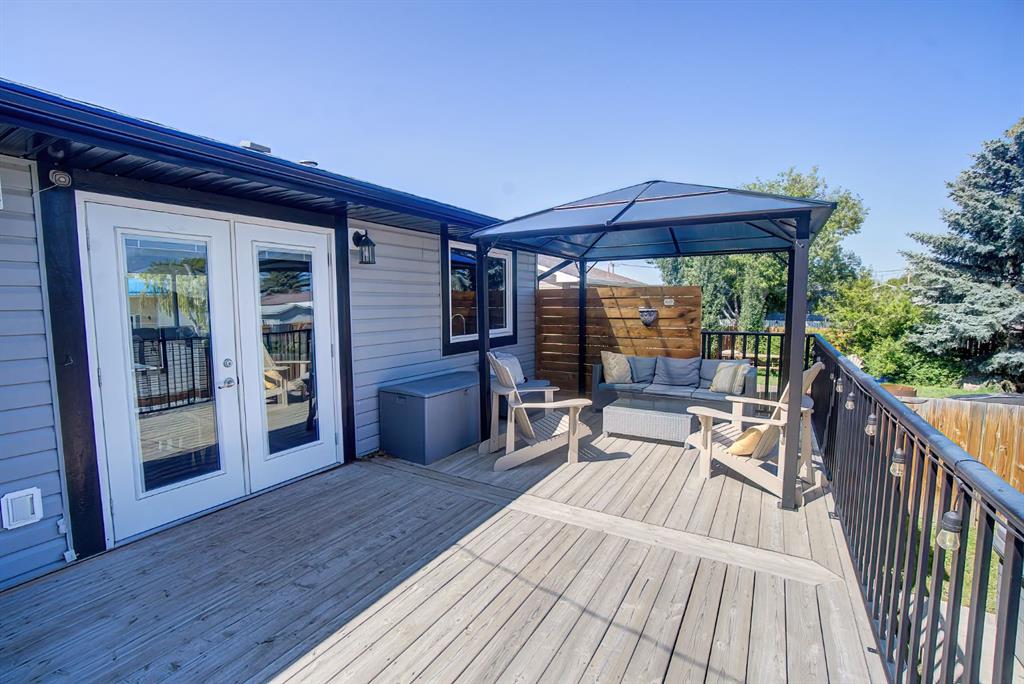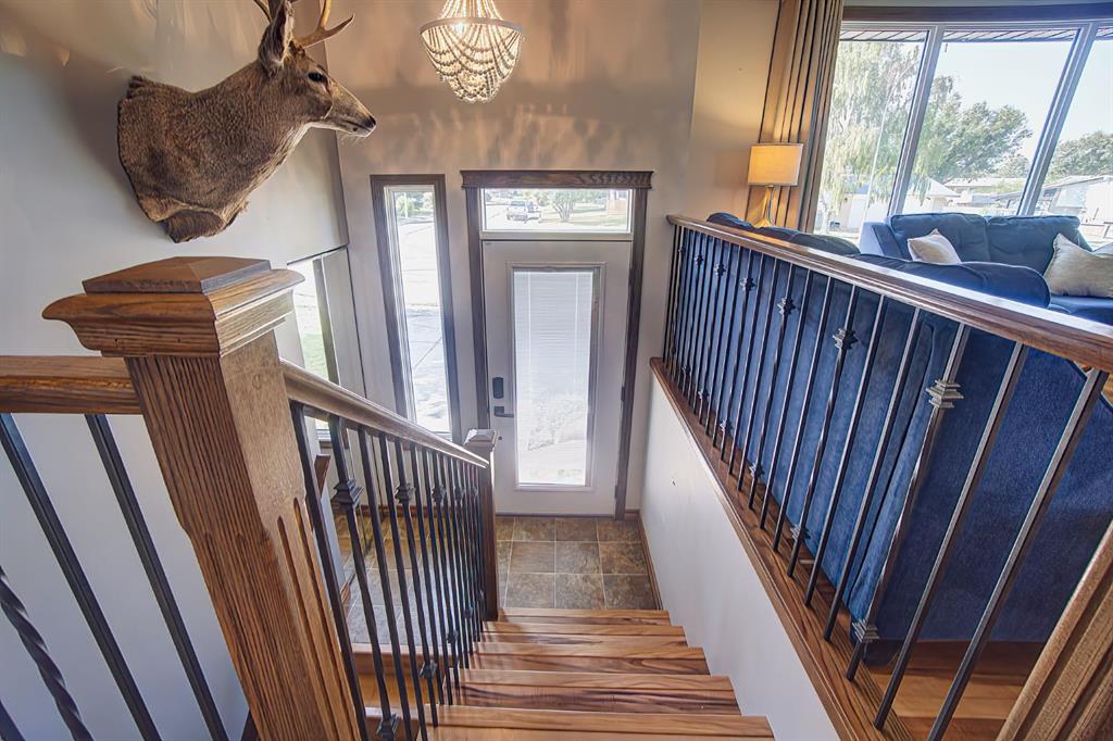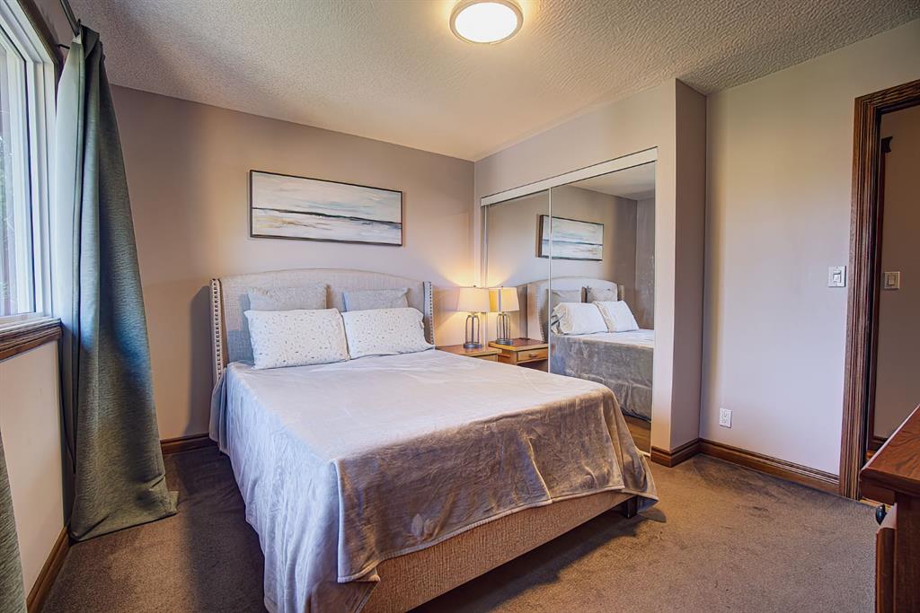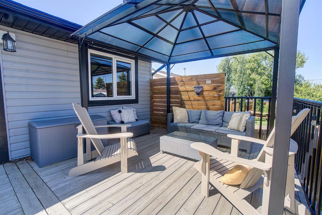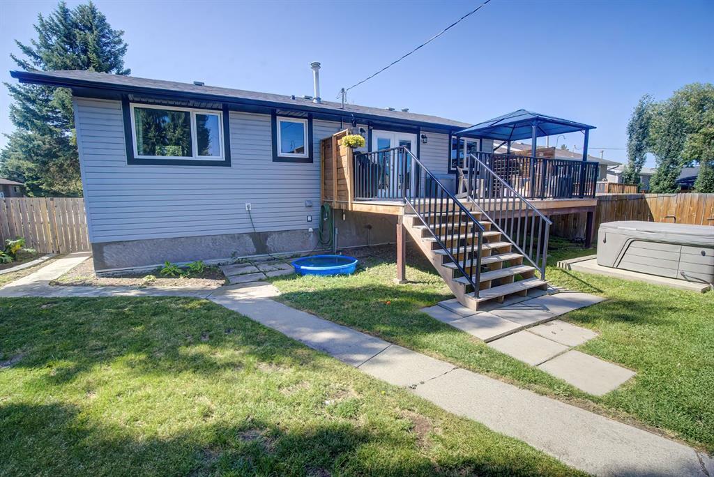 Welcome to this well-maintained and upgraded bi-level home, ideally situated on a large, irregularly shaped lot with convenient back alley access. From the moment you step inside, you’ll appreciate the bright and open main floor featuring a spacious living room with large south-facing windows and a cozy wood-burning fireplace as the focal point. The open-concept layout flows seamlessly into the kitchen and dining area, perfect for everyday living and entertaining. The kitchen offers plenty of space with oak cabinetry, an eat-up counter, and a lovely view of the backyard. Step through the garden doors from the dining room onto your expansive back deck, complete with a pergola for shade—ideal for relaxing or summer gatherings. The main floor also includes a beautifully updated 4-piece bathroom and three comfortable bedrooms, including the primary suite with its own private 3-piece ensuite. Downstairs, the partially finished basement provides a fantastic opportunity to create additional living space, with a family room, 3-piece bathroom, storage room, and plenty of room to add extra bedrooms if needed. Outside, the fully fenced backyard is a dream for those needing space—whether it’s for kids, pets, toys, or RVs. You’ll also love the large detached garage, in floor heat with a sump—perfect for working year-round. Located not far from the Lions Park and within easy walking distance to downtown amenities and local schools, this home combines comfort, convenience, and potential.