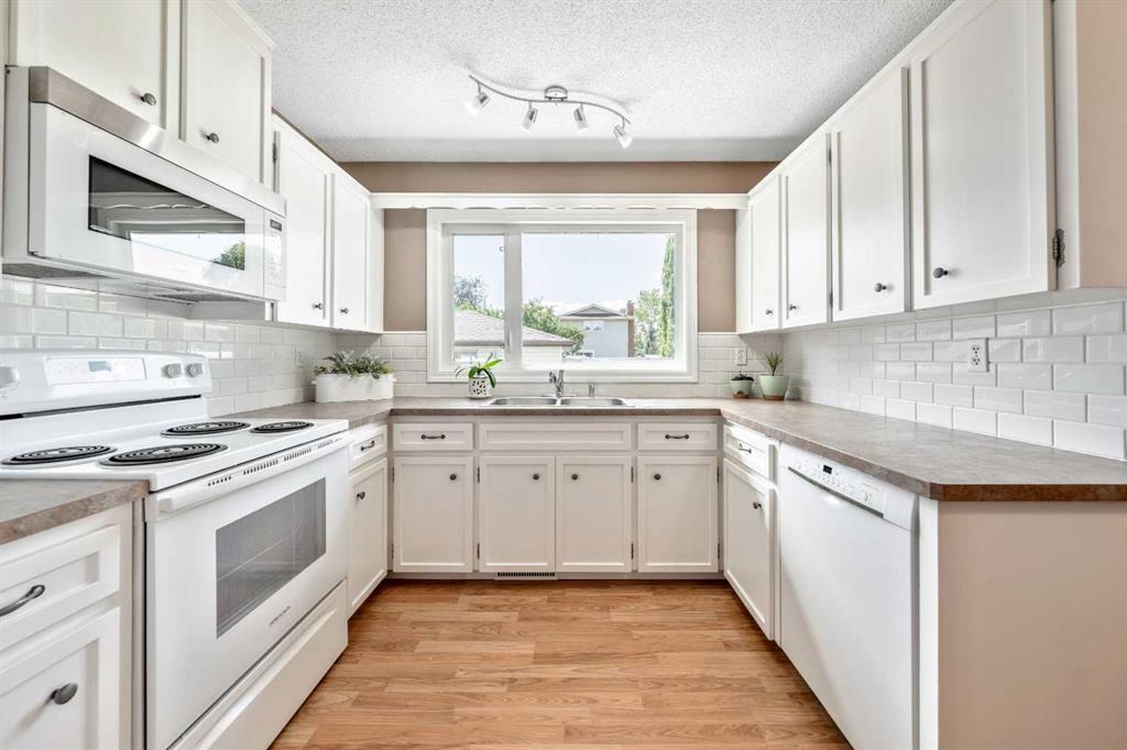 OPEN HOUSE SATURDAY AUGUST 16th 1pm to 4pm 7219 Range Dr NW Beautiful, Clean and Well Cared for Bungalow in a great location in upper NW corner of Ranchlands on a quiet street, steps from all the amenities of Crowfoot Crossing. Pride of ownership can be seen and felt upon walking into this lovely home with 3 bedrooms up (1 down) and 3 full baths plus an oversized double garage (23’5” x 23’5”) with workshop area. Large living area featuring a brick wood fireplace. Open and spacious, with the living room area being open to the dining. Bright kitchen with dining nook area has white shaker cabinetry with a big window overlooking the beautiful backyard. The primary bedroom has its own three-piece ensuite. Two other large kids bedrooms that could easily fit queen beds. The fully finished lower level has its own separate entry. Huge family room space with pot lighting and gas fireplace. A Flex room that could be your office or gym. A second flex room/ fourth bedroom and another full bathroom complete the lower level. Lovingly cared for with newer vinyl windows, lots of natural light. Hot water heater 2025. Roof 2014 (30 yr shingle). An absolutely beautiful, sunny South backyard, that is fully landscaped with mature gardens and patio. Large lot ((5797 sq ft) plenty of room for the kids or fury family members to play. Ranchlands is a lovely family friendly community with schools, parks and playgrounds giving you lots of greenspaces, off-leash area, bike & walking paths. Plus incredible easy access to all the amenities of Crowfoot Crossing with tons of restaurants, shops, grocery stores, movie theatre and more giving you everything you need just steps away. Walk to the YMCA & Public Library. Walk to all levels of schooling from Elementary to High School. Close access to the LRT and major road arteries. Great value for this beautiful detached home. This is the perfect family home! See the 3D tour (purple house symbol). Welcome home!