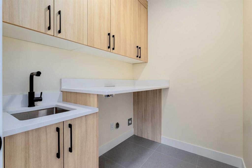 Upstairs, the primary suite offers a peaceful escape with high ceilings, a spacious walk-in closet, and a spa-inspired ensuite. From the luxurious soaker tub and double vanity to the heated floors and glass shower, every element is crafted for comfort. Two more bright and roomy bedrooms, a stylish 4-piece bathroom, and a fully equipped laundry room with built-in cabinetry and a quartz folding counter round out the upper level.