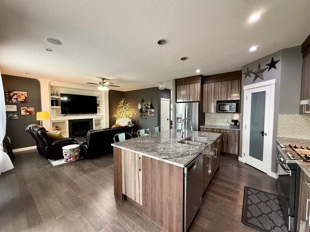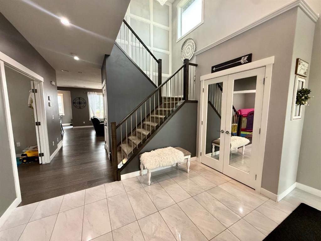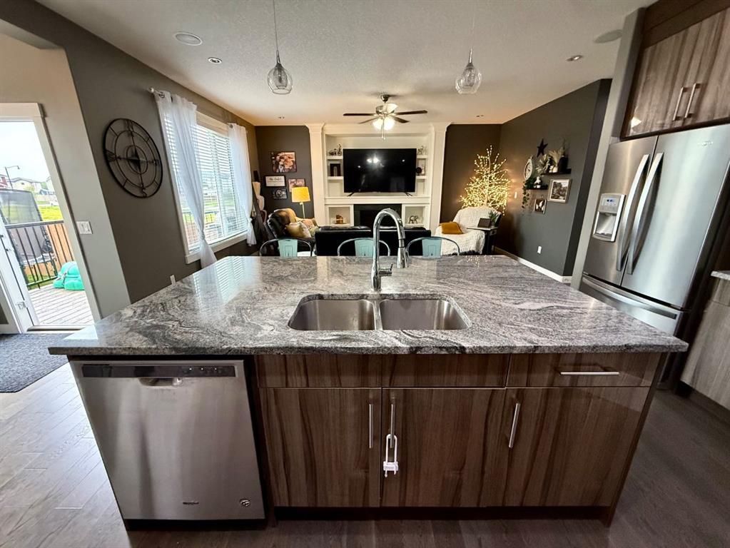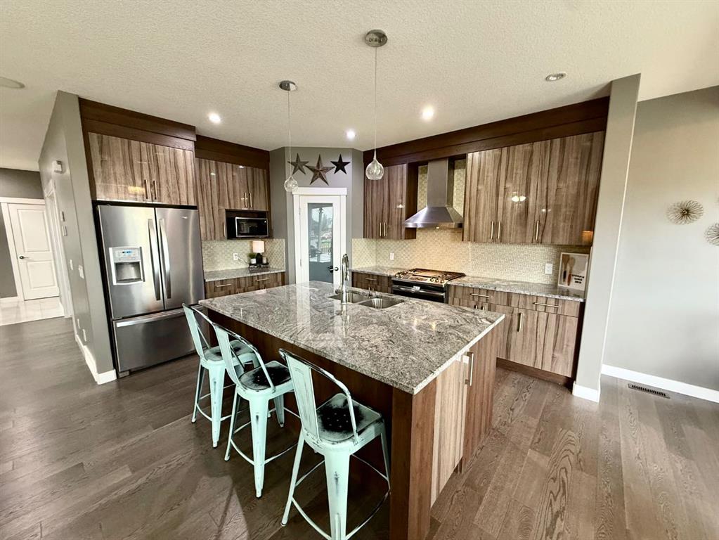 Welcome to your dream family home! This stunning 2,304 sq ft residence offers spacious living with oversized rooms and a smart, functional layout. The kitchen features an extra-large island, granite countertops, upgraded lighting, and plenty of space for cooking and gathering. Enjoy three generous bedrooms, 2.5 bathrooms, a large bonus room, and a main floor office perfect for working from home. The bright basement includes three daylight windows, a separate side entrance, bathroom rough-in, and is already framed—ready for future development. High-end finishes throughout include engineered hardwood floors, marble tile, and a grand two-storey front entry that makes a lasting impression. The sunny west-facing backyard includes a deck for relaxing or entertaining, and the heated garage with a natural gas forced-air furnace adds year-round comfort. This beautifully designed home has it all—space, style, and quality.