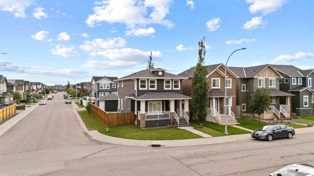 [OPEN HOUSE 17th Aug, Sun, 1:00-4:00 PM] Welcome to luxury living in the community of Evanston, NW, Calgary. This beautifully appointed Laned home is situated on a CORNER lot (4000 SQ FT conventional lot) and comes with DOUBLE Car Garage, FINISHED basement and offers 4 bedrooms, 2 living rooms on the main floor and 3.5 baths. The fully developed basement offers a huge bedroom with full 3PC bathroom, family room, office area and storage room. Enjoy the benefits of an extra-wide lot with a sunny south-facing backyard and RV parking. Built in 2013, this property features over 2350 sq. ft. thoughtfully designed living space and comes with EXECUTIVE kitchen, New ROOF, Central A/C, stone-surrounded fireplace, Granite countertops, in-built speakers, front porch, brick patio in the back, celling fans, upgraded lights, and doorbell camera. This house is within walking distance to the ‘Our Lady of Grace School’ and playground. Step inside and be welcomed by the spacious main floor with soaring 9 ft. ceilings. Designed for versatility and comfort, this level features two generous living rooms, perfect for large gatherings or easily adaptable as a formal sitting area, home office, playroom, or even an additional bedroom. At the heart of the home lies an expansive chef’s kitchen, fully equipped with a gas range, chimney hood fan, built-in microwave, dishwasher, stainless steel appliances, granite countertops, kitchen island, wine rack, and ample cabinetry. A walk-in pantry adds to convenience, ensuring everything has its place. Adjacent to the kitchen is a spacious dining area that flows effortlessly into the beautifully landscaped backyard—ideal for entertaining or enjoying quiet evenings outdoors. Upstairs, you’ll find three large bedrooms, including a luxurious primary suite with a spa-like 5-piece ensuite featuring dual sinks, a soaker tub, separate shower, and a walk-in closet. Two additional bedrooms share a stylish 4-piece bathroom, while a convenient laundry room with washer and dryer completes the upper level. One of the standout features of this home is the fully finished basement, offering incredible flexibility for extended family or personal use. It includes one big Bedroom, a full 3-piece bathroom, very spacious family, dedicated office space and ample storage which is perfect for work, play, or guests. Step outside to the south-facing backyard, complete with a large double-car garage and a beautiful patio—a perfect space to unwind or entertain. Both front and back yards are professionally landscaped and fully fenced, providing a blend of beauty and privacy. Additional upgrades include window blinds, modern lighting fixtures, and extra windows that fill the home with natural light. Evanston community consist of 5 schools (Public, Catholic, K-9), and super close to Walmart, Fresh-Co, Costco, Gas Stations, Banks, Parks, restaurant, stores and many commercial amenities. Don’t miss the opportunity and book your private appointment today!!
